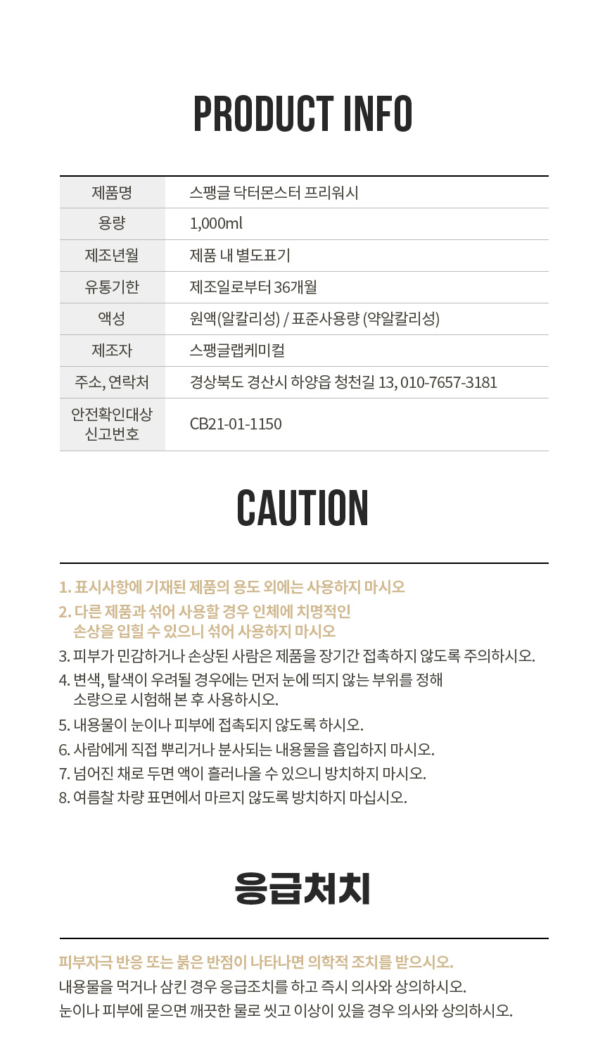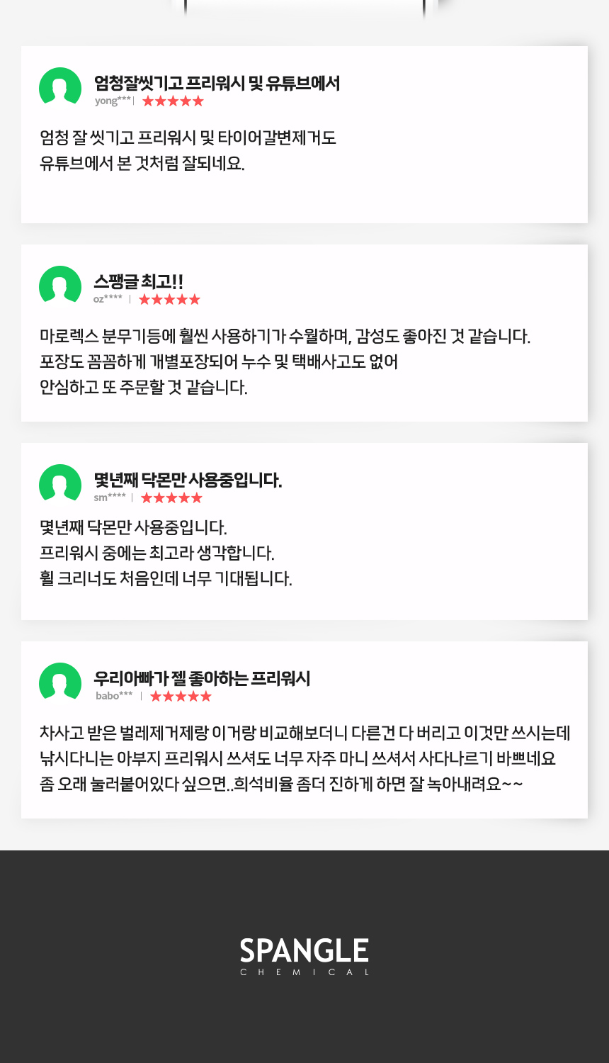 자세한 사항은 스팽글랩케미컬 고객센터로 연락주시기 바랍니다.