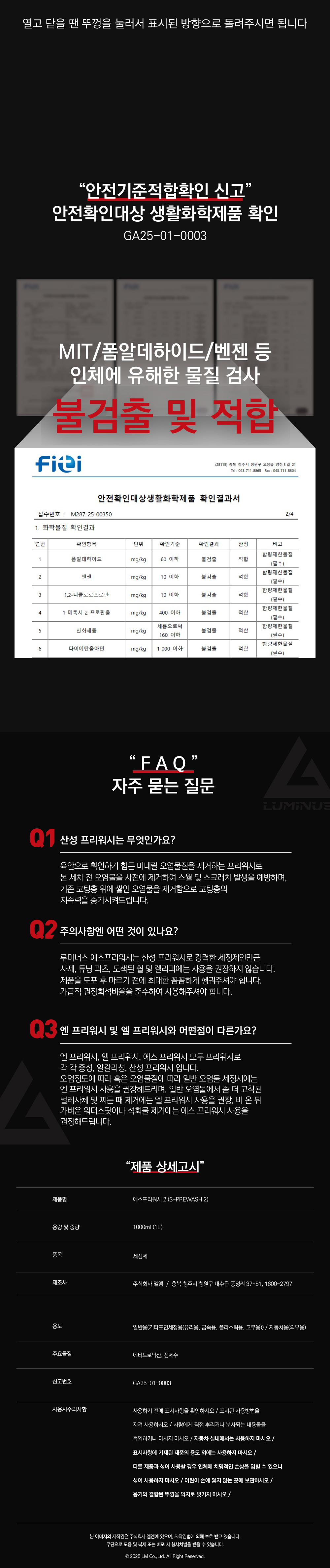 | 1. 품목 및 제품명 | 루미너스 에스프리워시 2.0 1,000ml |