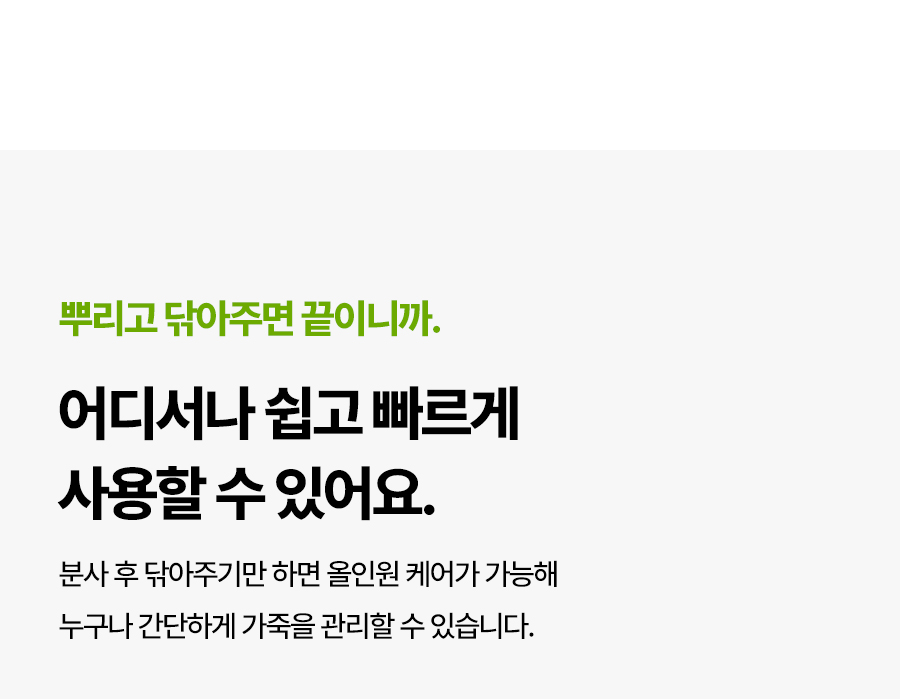| 2. 용도(표백제의 경우 계열을 함께 표시) 및 제형 | 세정제품 > 세정제 > 자동차용 (실내용) 세정제품 > 제거제 > 자동차용 (실내용) 코팅제품 > 광택코팅제 > 자동차용 (실내용) 코팅제품 > 특수목적코팅제 > 자동차용 (실내용) 분무기형 |