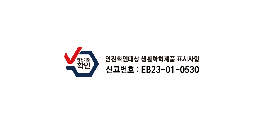 | 10. 안전기준 적합확인 신고번호(자가검사번호) 또는 안전확인대상 생활화학제품 승인번호 | EB23-01-0530 |