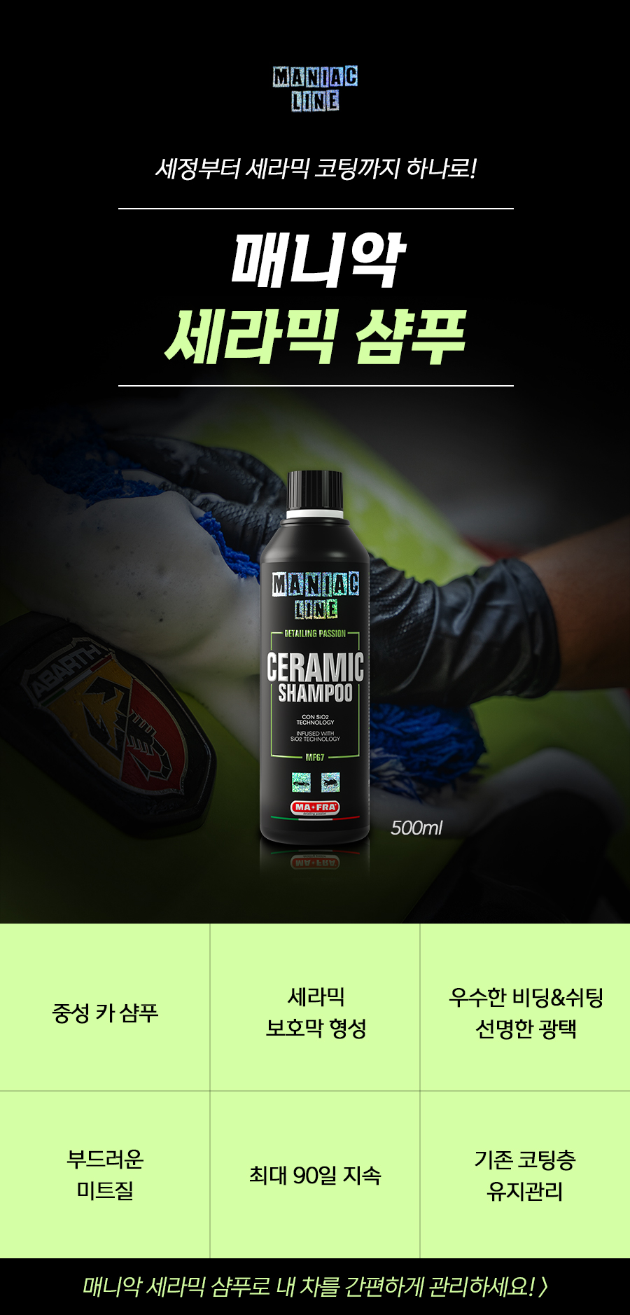 | 1. 품목 및 제품명 | 매니악 세라믹 샴푸 세정제품 > 세정제 > 자동차용 (외부용) 코팅제품 > 광택코팅제 > 자동차용 (외부용) 코팅제품 > 특수목적코팅제 > 자동차용 (외부용) |