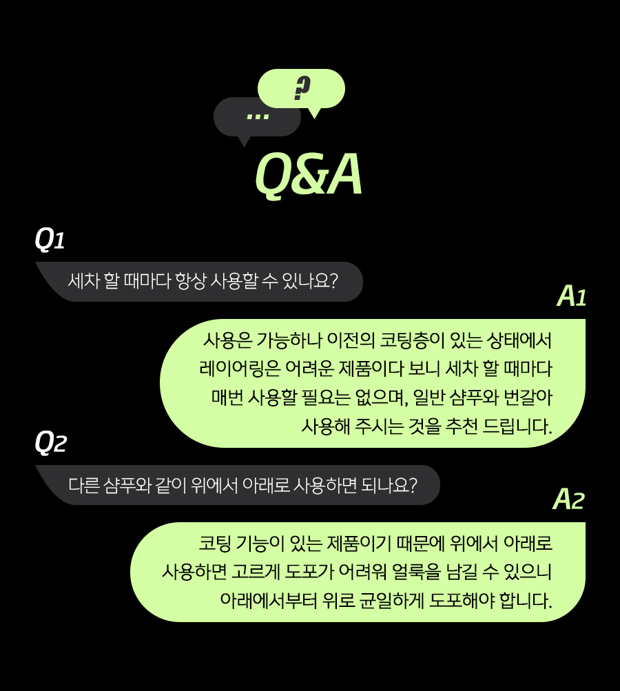 | 2. 용도(표백제의 경우 계열을 함께 표시) 및 제형 | 세정제품 > 세정제 > 자동차용 (외부용) 코팅제품 > 광택코팅제 > 자동차용 (외부용) 코팅제품 > 특수목적코팅제 > 자동차용 (외부용) 보충형(분무기형), 액체형 |