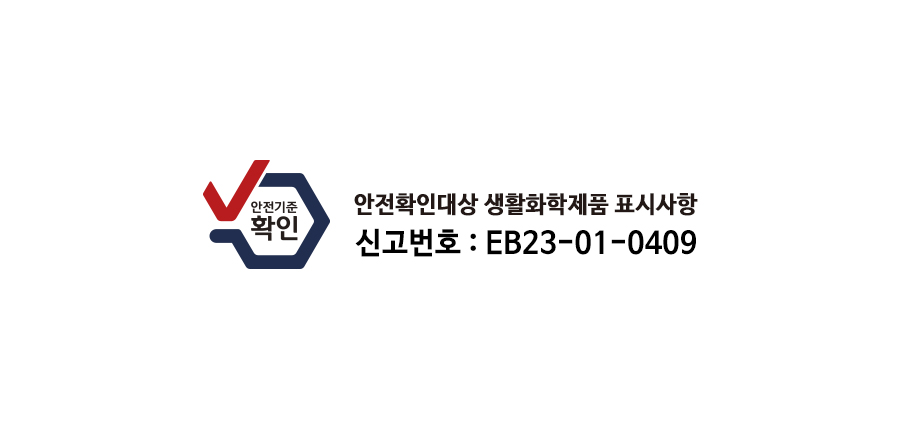 | 10. 안전기준 적합확인 신고번호(자가검사번호) 또는 안전확인대상 생활화학제품 승인번호 | EB23-01-0409 |