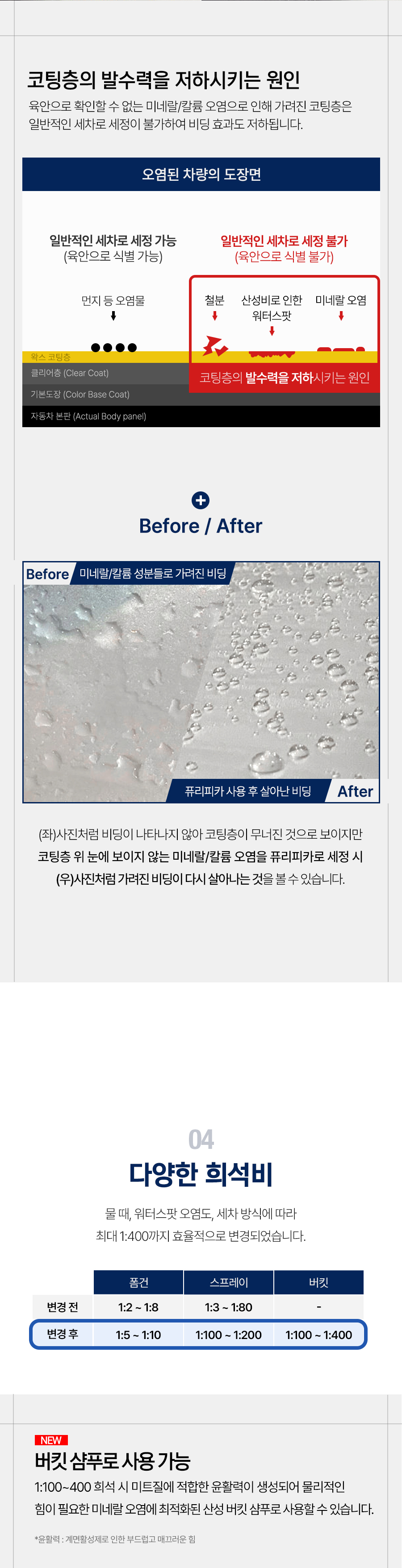 | 2. 용도(표백제의 경우 계열을 함께 표시) 및 제형 | 세정제품 > 세정제 > 자동차용 (외부용) 보충형(분무기형), 액체형 |