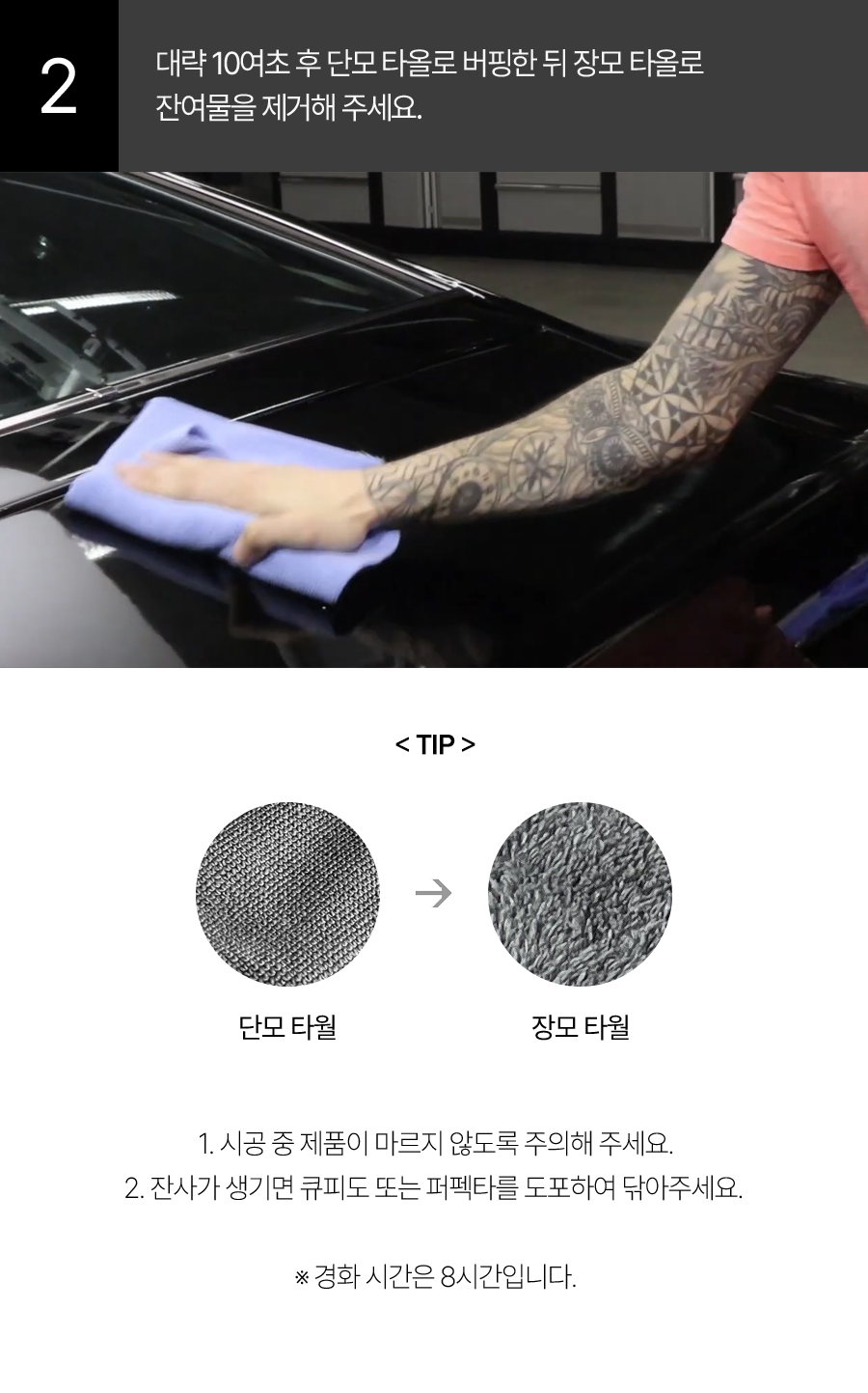 | 9. 사용상 주의사항 | 다른 제품과 섞어 사용할 경우 인체에 치명적인 손상을 입힐 수 있으니 섞어 사용하지 마시오. 표시사항에 기재된 제품의 용도 외에는 사용하지 마시오. 자동차 실내에서는 사용하지 마시오. 피부가 민감하거나 손상된 사람은 제품을 장기간 접촉하지 않도록 주의하시오. 시공 부위에 열이 있거나 직사광선에서 시공하지 마시오. 얼룩이 생겼다면 다시 한번 분사하여 닦아내시오. |