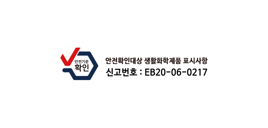 | 10. 안전기준 적합확인 신고번호(자가검사번호) 또는 안전확인대상 생활화학제품 승인번호 | EB20-06-0217 |