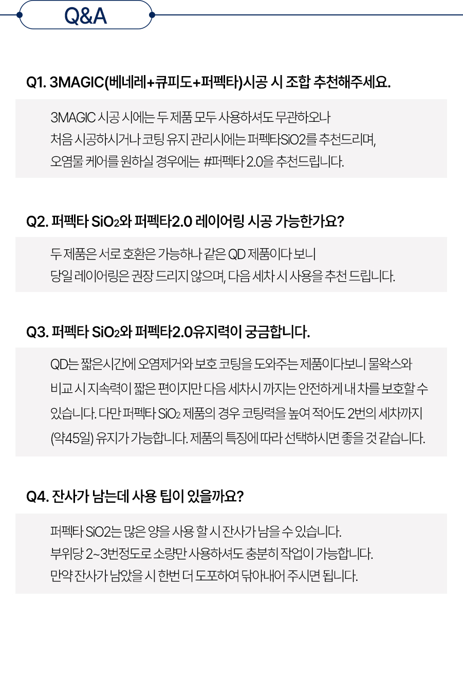 | 2. 용도(표백제의 경우 계열을 함께 표시) 및 제형 | 세정제품 > 제거제 > 자동차용 (외부용 (가벼운오염물(먼지,벌레사체,새똥 등))) 코팅제품 > 광택코팅제 > 자동차용 (외부용) 코팅제품 > 특수목적코팅제 > 자동차용 (외부용) 보충형(분무기형) |