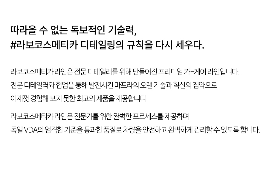 | 1. 품목 및 제품명 | 라보코스메티카 퍼펙타 에스아이오투 세정제품 > 제거제 > 자동차용 (외부용 (가벼운오염물(먼지,벌레사체,새똥 등))) 코팅제품 > 광택코팅제 > 자동차용 (외부용) 코팅제품 > 특수목적코팅제 > 자동차용 (외부용) |