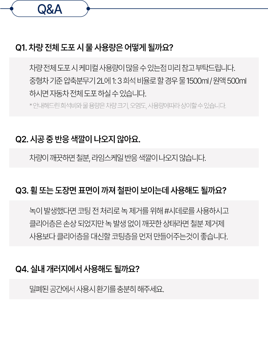 | 2. 용도(표백제의 경우 계열을 함께 표시) 및 제형 | 세정제품 > 세정제 > 자동차용 (외부용) 세정제품 > 제거제 > 일반용 (기타제거용 (녹제거용)) 세정제품 > 제거제 > 자동차용 (외부용 (철분,미네랄,녹,분진제거용)) 분무기형, 보충형(분무기형) |