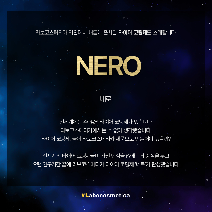 | 1. 품목 및 제품명 | 라보코스메티카 네로 코팅제품 > 광택코팅제 > 자동차용 (외부용) 코팅제품 > 특수목적코팅제 > 자동차용 (외부용) |