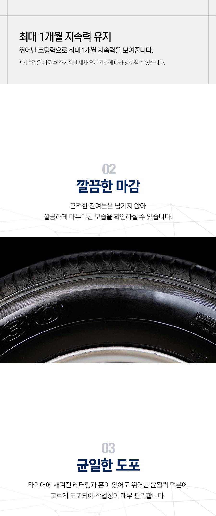 | 2. 용도(표백제의 경우 계열을 함께 표시) 및 제형 | 코팅제품 > 광택코팅제 > 자동차용 (외부용) 코팅제품 > 특수목적코팅제 > 자동차용 (외부용) 에멀션형 |