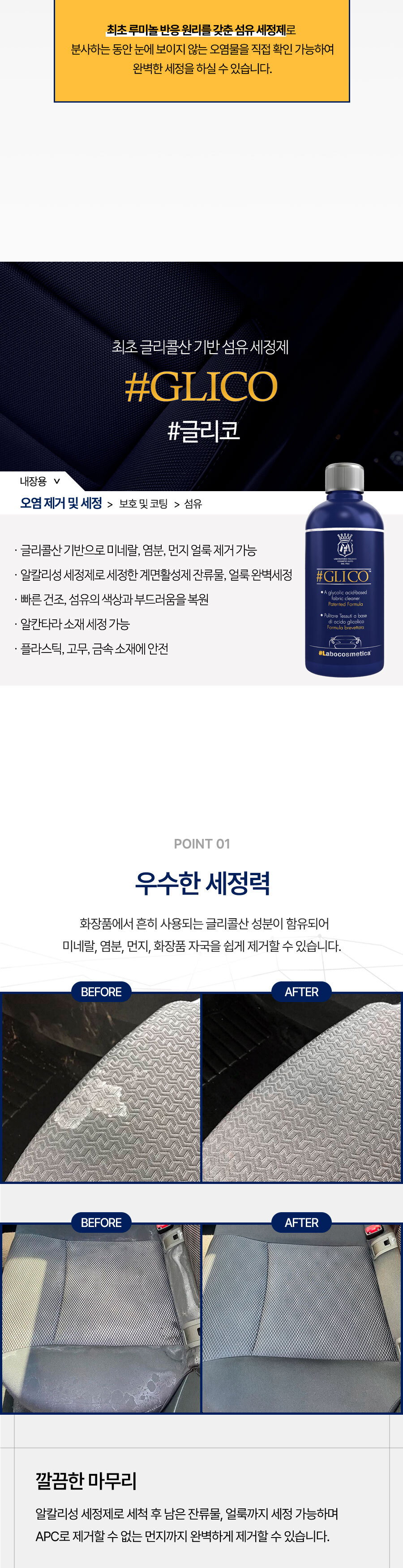 | 1. 품목 및 제품명 | 라보코스메티카 글리코 세정제품 > 세정제 > 자동차용 (실내용) 세정제품 > 제거제 > 자동차용 (실내용) |