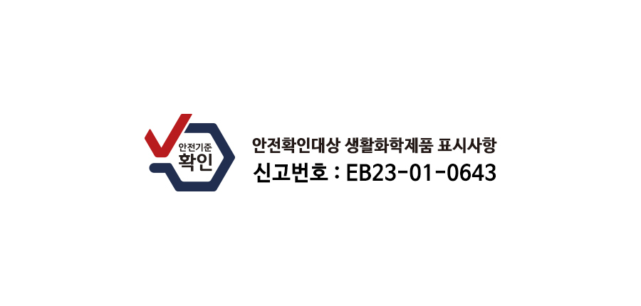 | 10. 안전기준 적합확인 신고번호(자가검사번호) 또는 안전확인대상 생활화학제품 승인번호 | EB23-01-0643 |