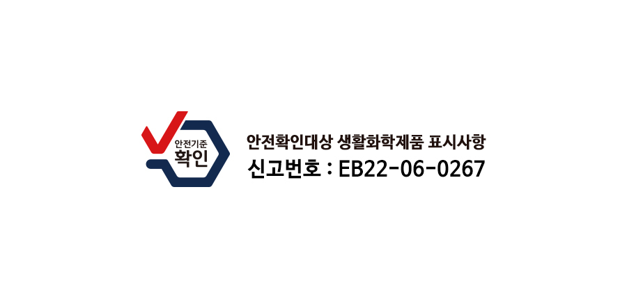 | 10. 안전기준 적합확인 신고번호(자가검사번호) 또는 안전확인대상 생활화학제품 승인번호 | EB22-06-0267 |