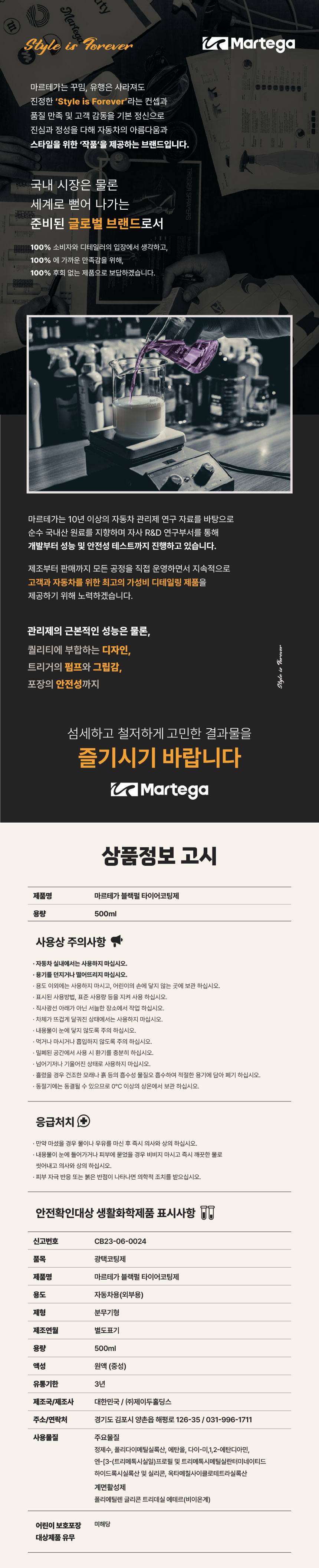 | 1. 품명 및 모델명 | 마르테가 블랙펄 타이어코팅제 |