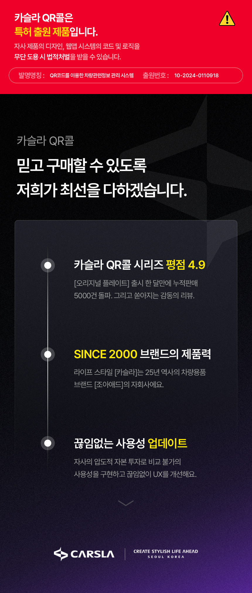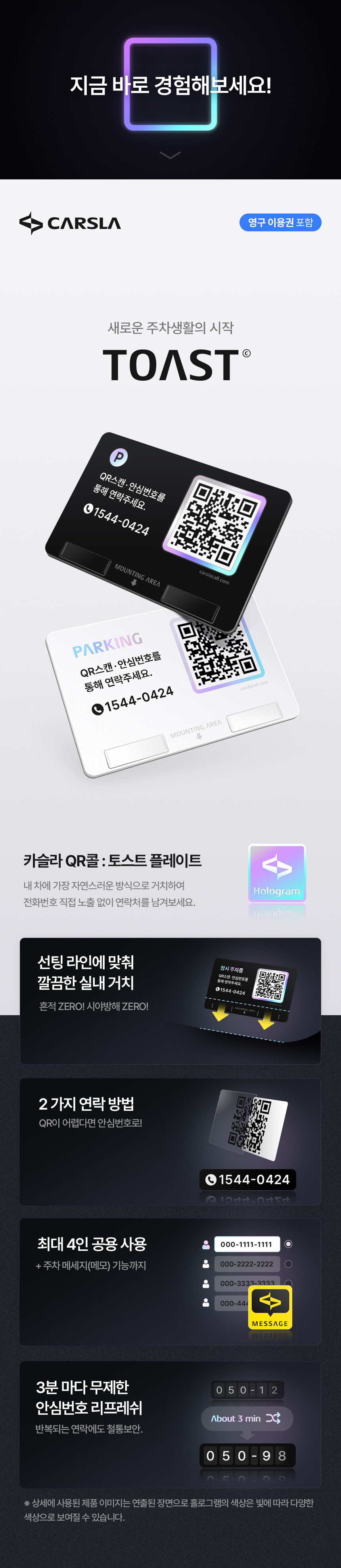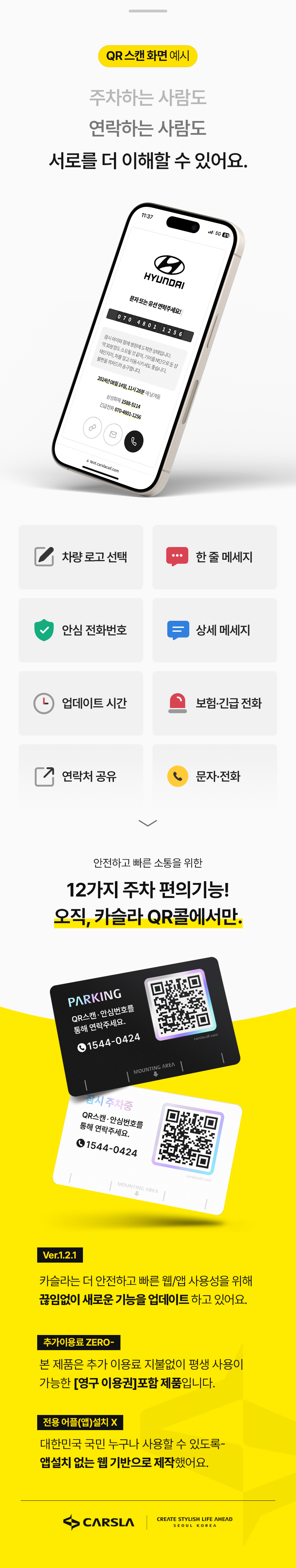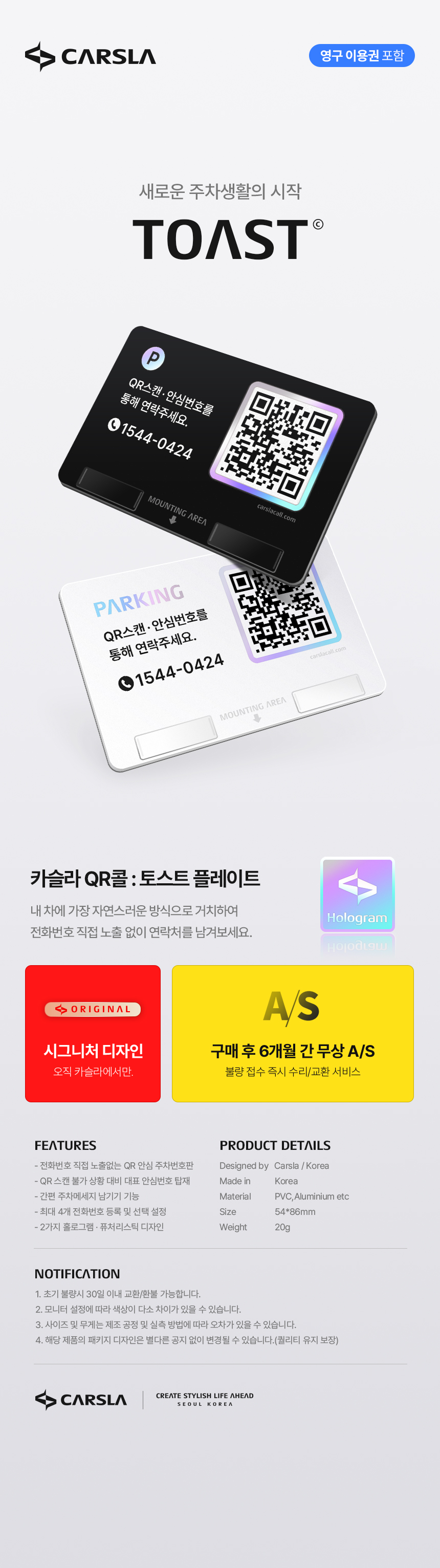 | 1. 품명 및 모델명 | 카슬라 QR콜 QR코드 안심번호 주차번호판 토스트 |