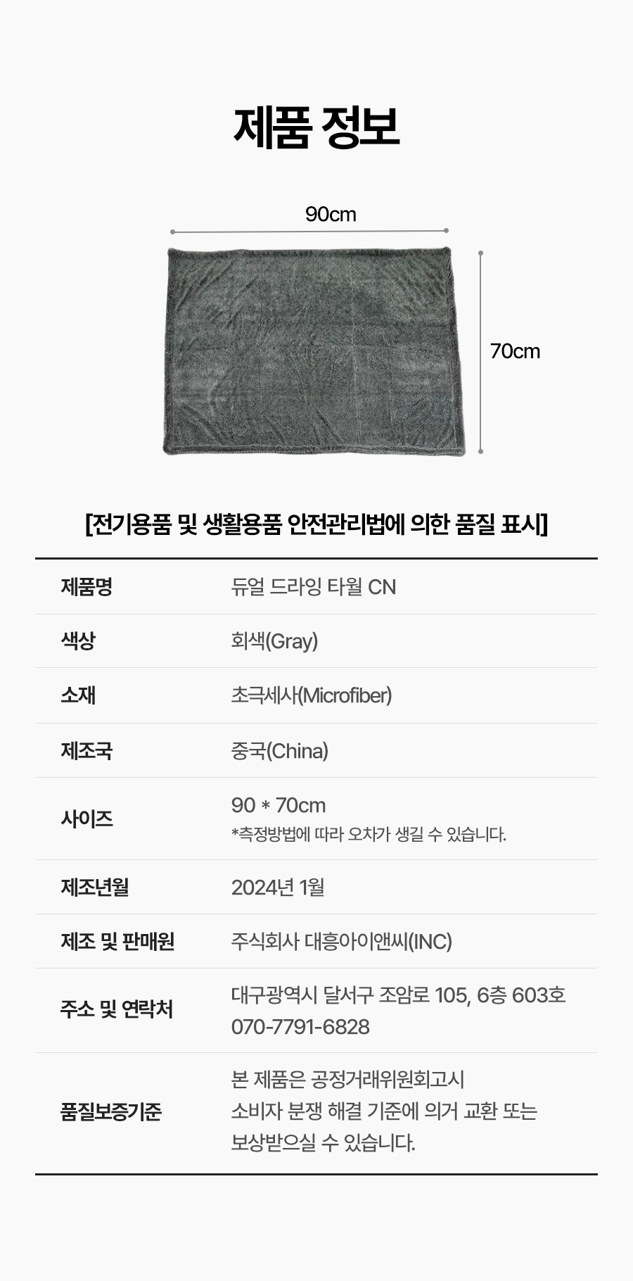 | 1. 품명 및 모델명 | 듀얼 드라잉 타월cn |