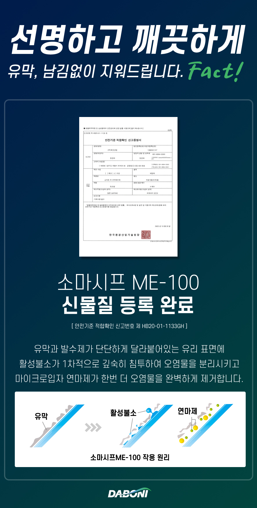 | 1. 품목 및 제품명 | 유막제거제 : 다보니 더지니 유막제거제 발수코팅제 : 다보니 더지니 발수코팅제 |