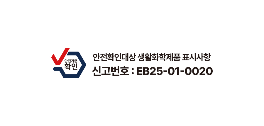 | 10. 안전기준 적합확인 신고번호(자가검사번호) 또는 안전확인대상 생활화학제품 승인번호 | EB25-01-0020 |