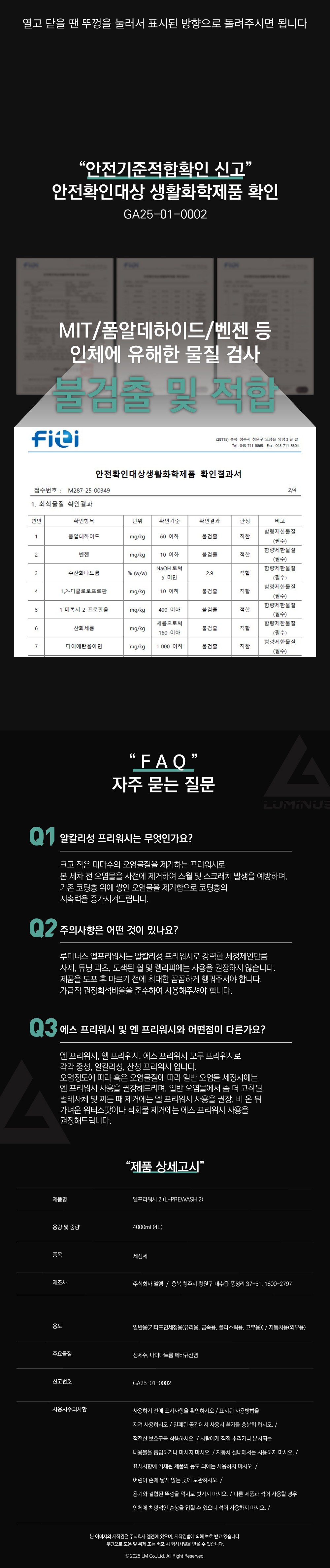 | 1. 품목 및 제품명 | 루미너스 엘프리워시 2.0 4L |