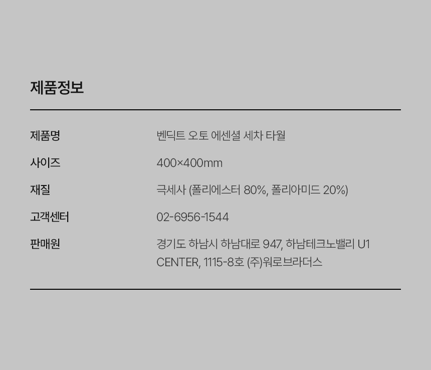 | 1. 품명 및 모델명 | 벤딕트 오토 에센셜 세차타월 |