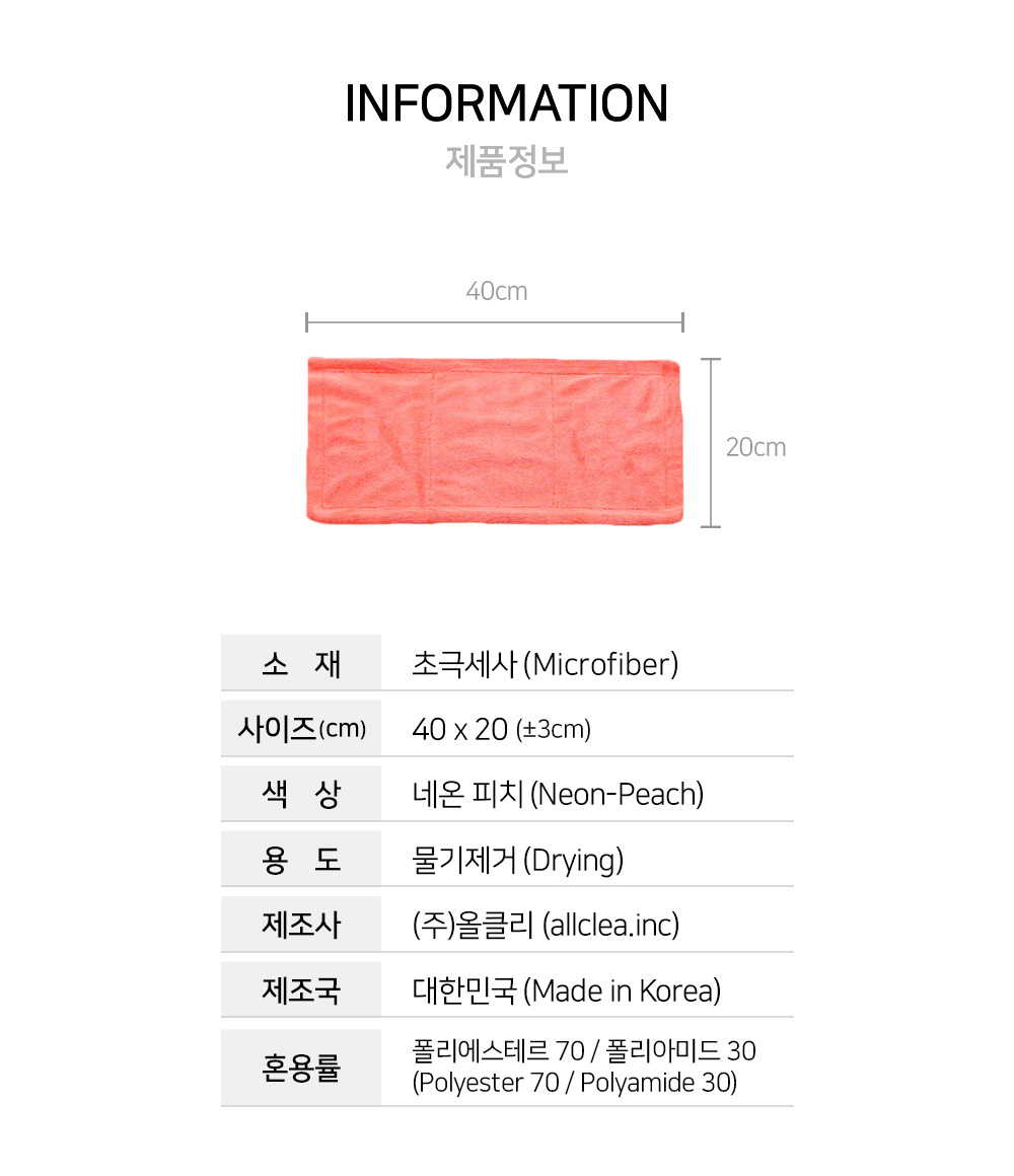 | 1. 품명 및 모델명 | 슈페리어 드라잉타월(소)(네온피치) |