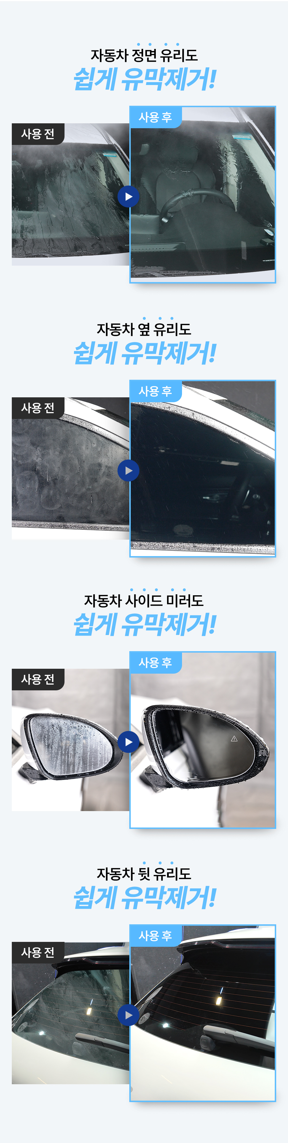 사이드미러, 옆면 유리, 후면 유리 사용 부위에 따라 횟수는 달라질 수 있습니다.