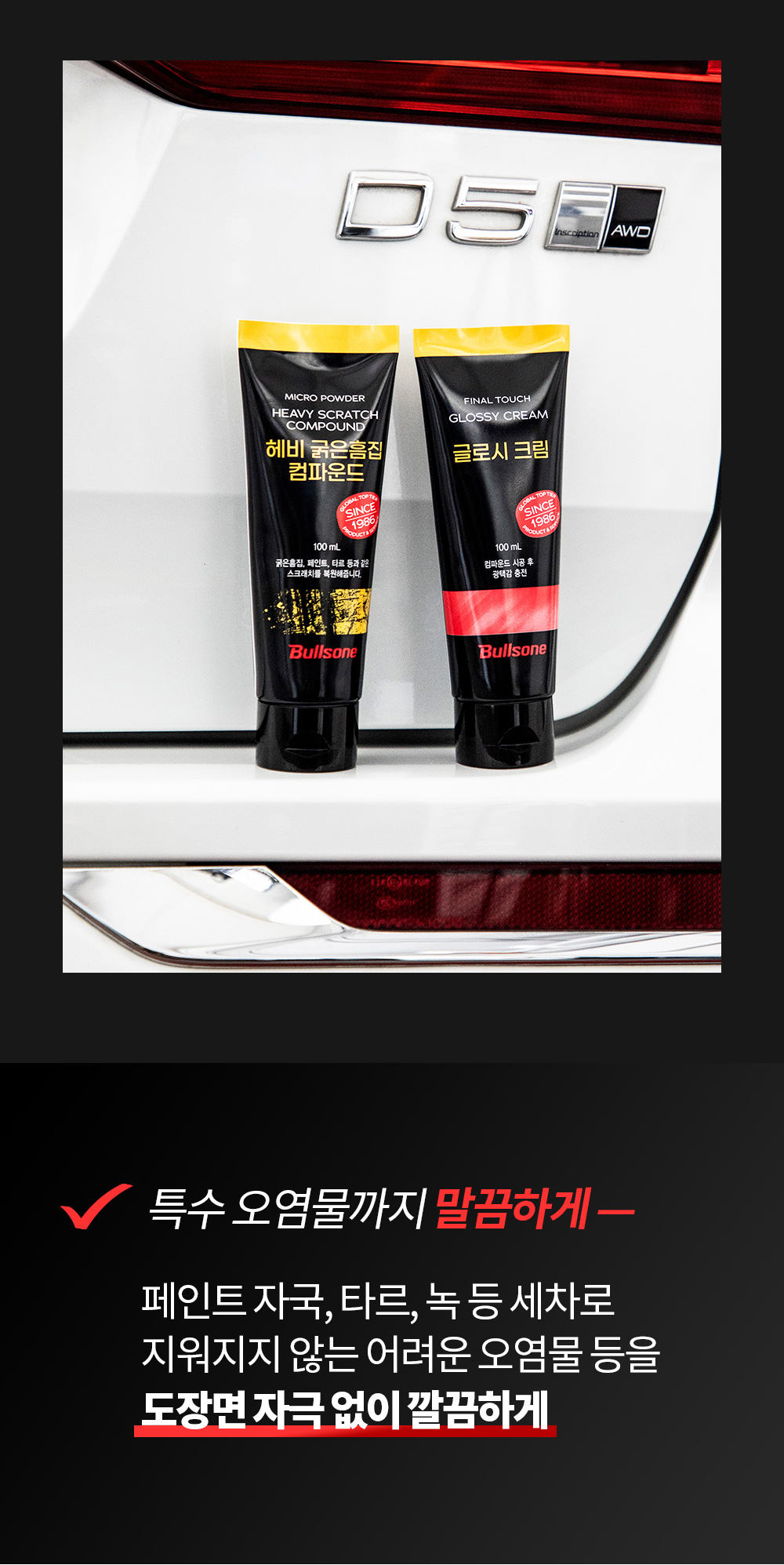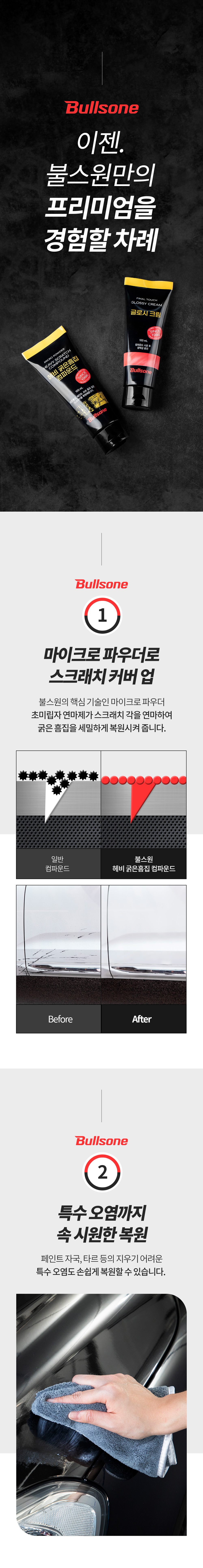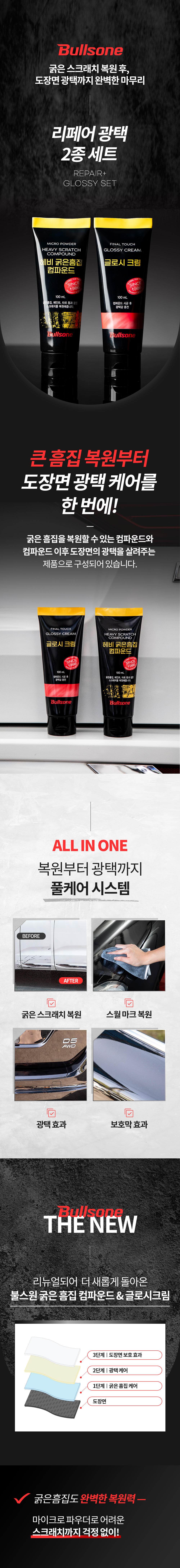 | 1. 품목 및 제품명 | [굵은흠집 컴파운드] •품목: 광택코팅제 •제품명: 불스원 헤비 굵은 흠집 컴파운드 [글로시크림] •품목: 광택코팅제, 특수목적코팅제 •제품명: 리페어 글로시 크림 |