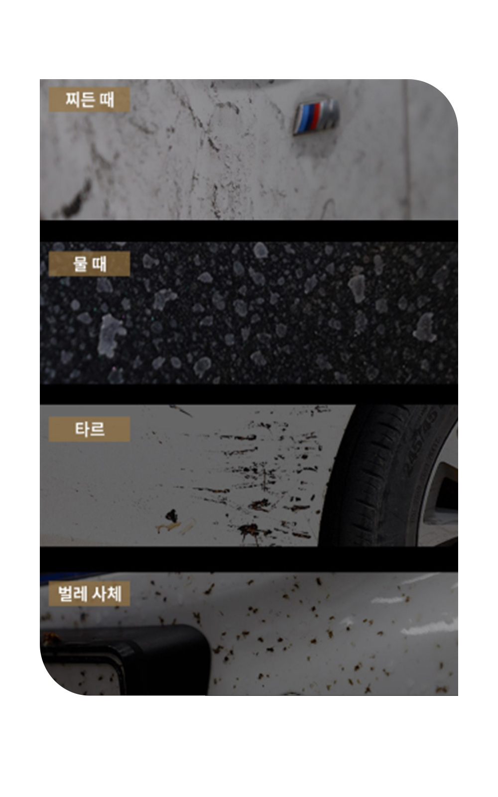 | 9. 사용상 주의사항 | •용도 이외에는 사용하지 마시오.•인체에는 절대 사용하지 마시오.•어린이의 손이 닿지 않는 곳에 보관하시오.•먹거나 흡입하지 마시오.•만일, 먹었을 경우 응급조치를 취한 후 의사와 상담하시오.•사용 시 고무장갑 등을 착용하시오.•사용시 피부에 이상이 있을 경우에는 사용을 중지하시오.•사용 후에는 반드시 손을 깨끗이 씻어 주시오.•용기와 결합된 뚜껑을 억지로 벗기지 마시오. •넘어진 채로 방치되면 액이 흘러나올 수 있으므로 주의하시오.•제품의 내용물을 분무기 등에 담아 분사하지 마시오.•화기에 가까이 하지 마시오.•코팅이 벗겨진 부분이나 오래된 부분에 사용 시 보이지 않는 곳 또는 국소 부위에 시공 후 이상이 없을 때 사용하시오.•새 차나 재도장 차량은 먼저 일부분에 적은 힘으로 사용 후 이상이 없을 때 사용하시오.•차량 도장이 뜨거울 경우 얼룩이 발생할 수 있으므로 그늘진 곳에서 차량을 완전히 식힌 후 사용하시오.•옷 등에 내용물이 묻을 경우 얼룩이 생길 수 있으니 곧바로 세탁하시오.•제품이 얼게 될 경우 변질의 우려가 있으니 영하나 40 ℃ 이상의 장소에서는 보관을 피하고 사용 후에는 뚜껑을 꼭 닫아주시오.•자동차 실내에서는 사용하지 마시오. |