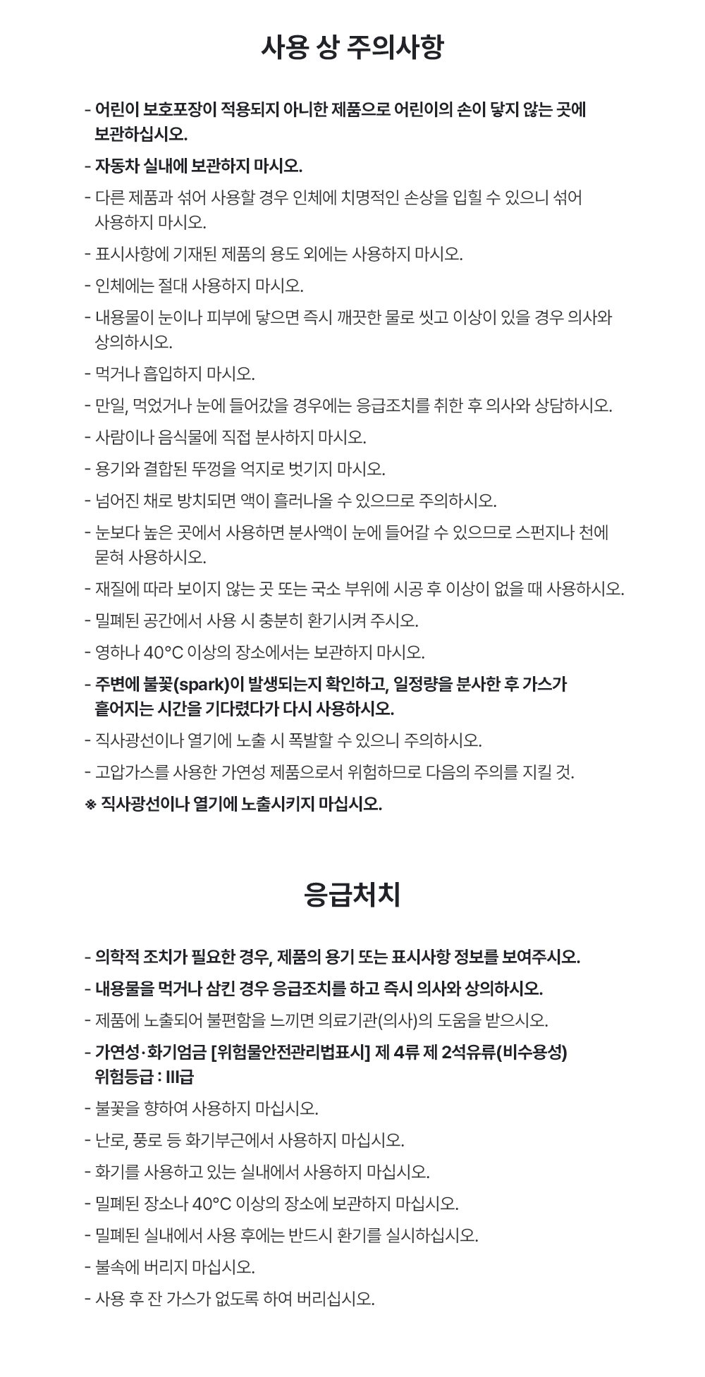 | 9. 사용상 주의사항 | 상세페이지 참조 |