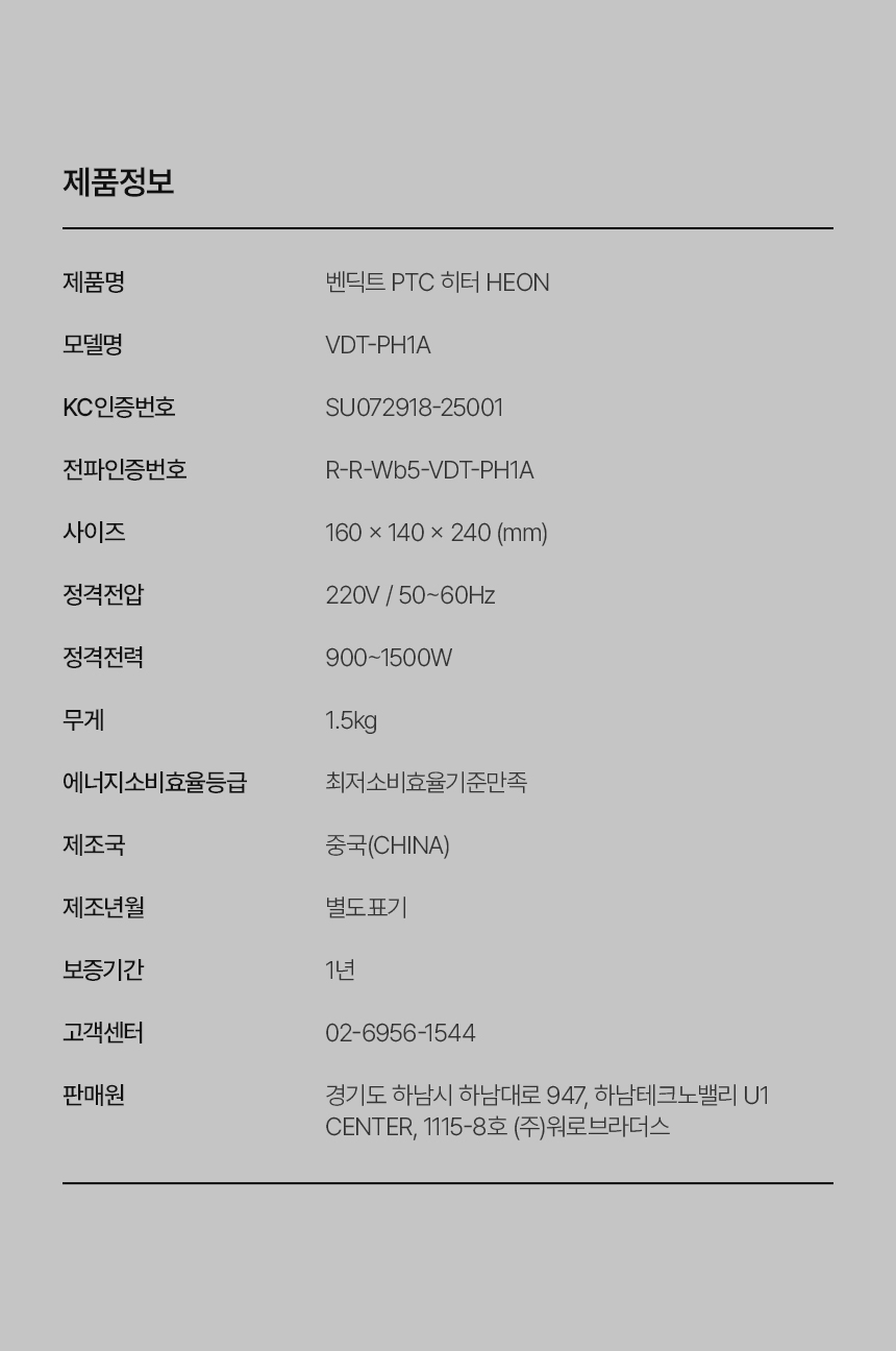 | 1. 품명 및 모델명 | 벤딕트 온풍기 헤온 |