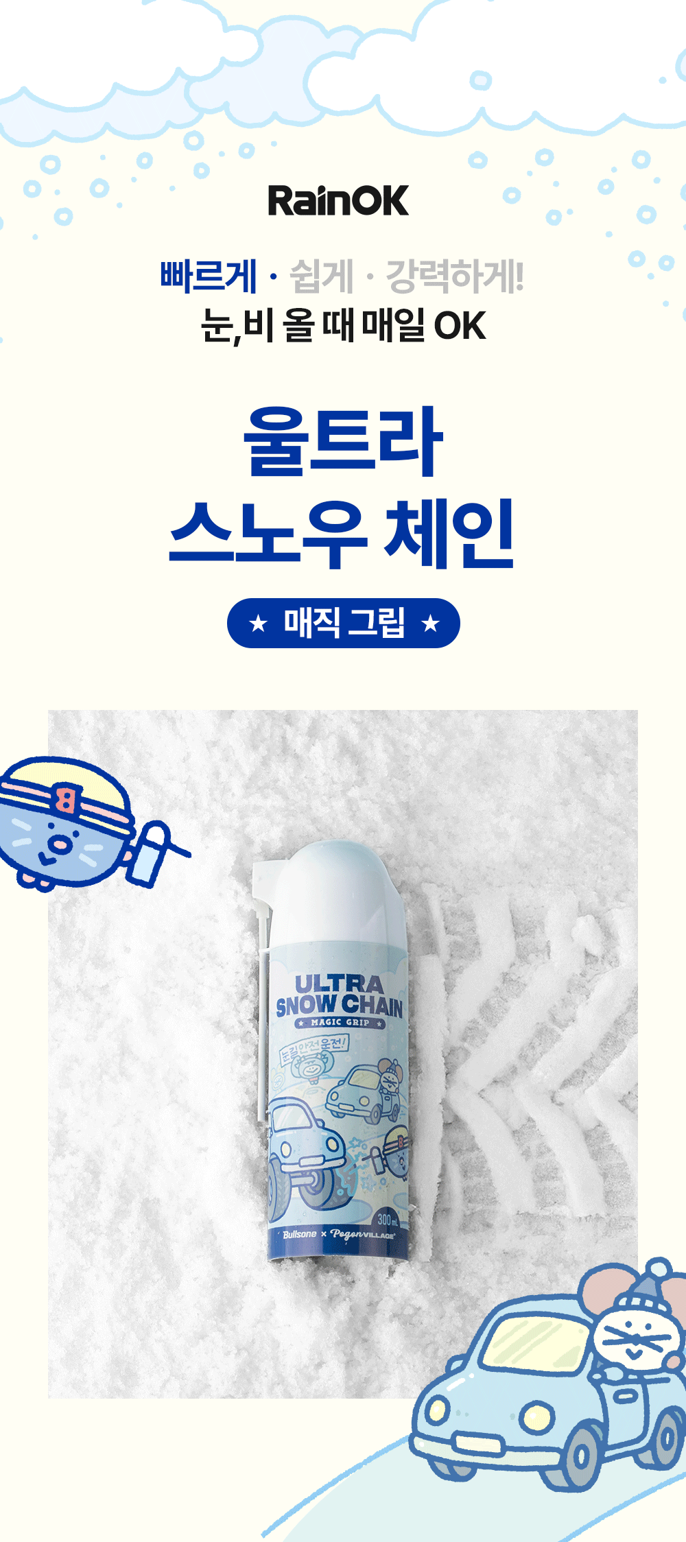 | 1. 품목 및 제품명 | [스노우체인] • 품목 : 특수목적코팅제 • 제품명 : 울트라 매직그립 스노우체인 [김서림방지] • 품목: 세정제, 특수목적코팅제 • 제품명: 레인오케이 안티포그 스프레이 |