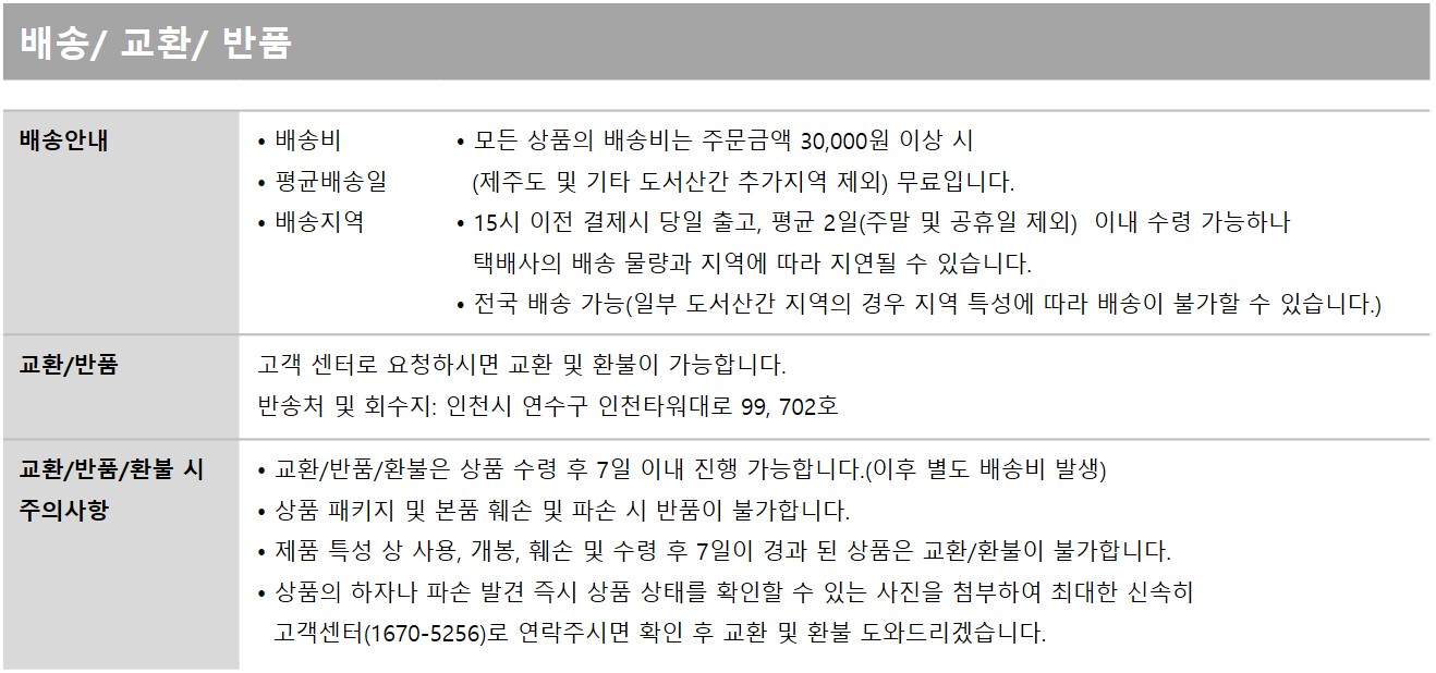 | 9. 품질보증기준 | 본 제품은 공정거래위원회 고시 소비자분쟁해결기준에 따라 보상 받을 수 있습니다. |