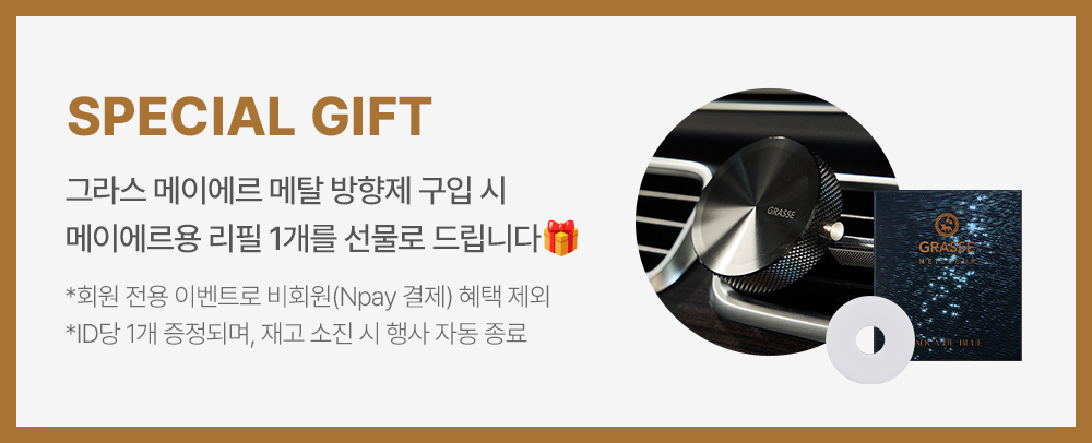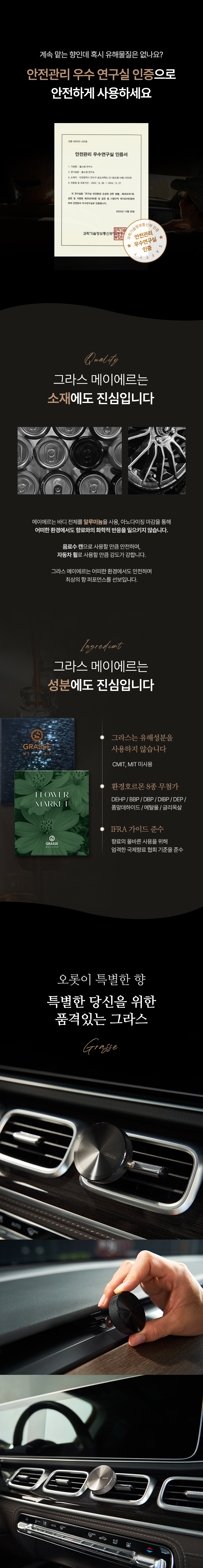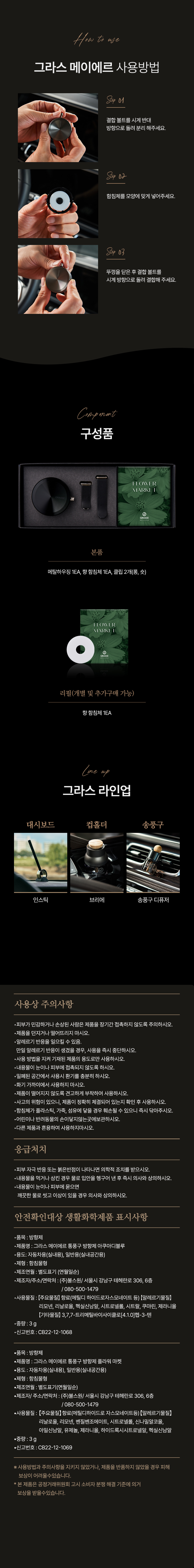 | 1. 품목 및 제품명 | •품목 :방향제 •제품명 : 그라스 메이에르 통풍구 방향제 아쿠아디블루 •제품명 : 그라스 메이에르 통풍구 방향제 피오니 부케 |