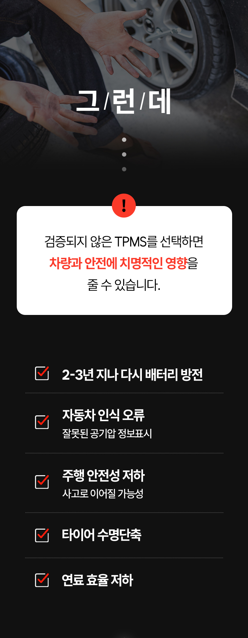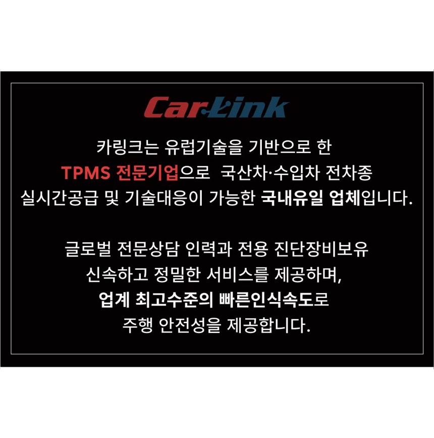 문의내용스타리아 라운지24년4월출고 현제주행거리 문의답변안녕하세요! tpms 전문기업 카링크 입니다. |