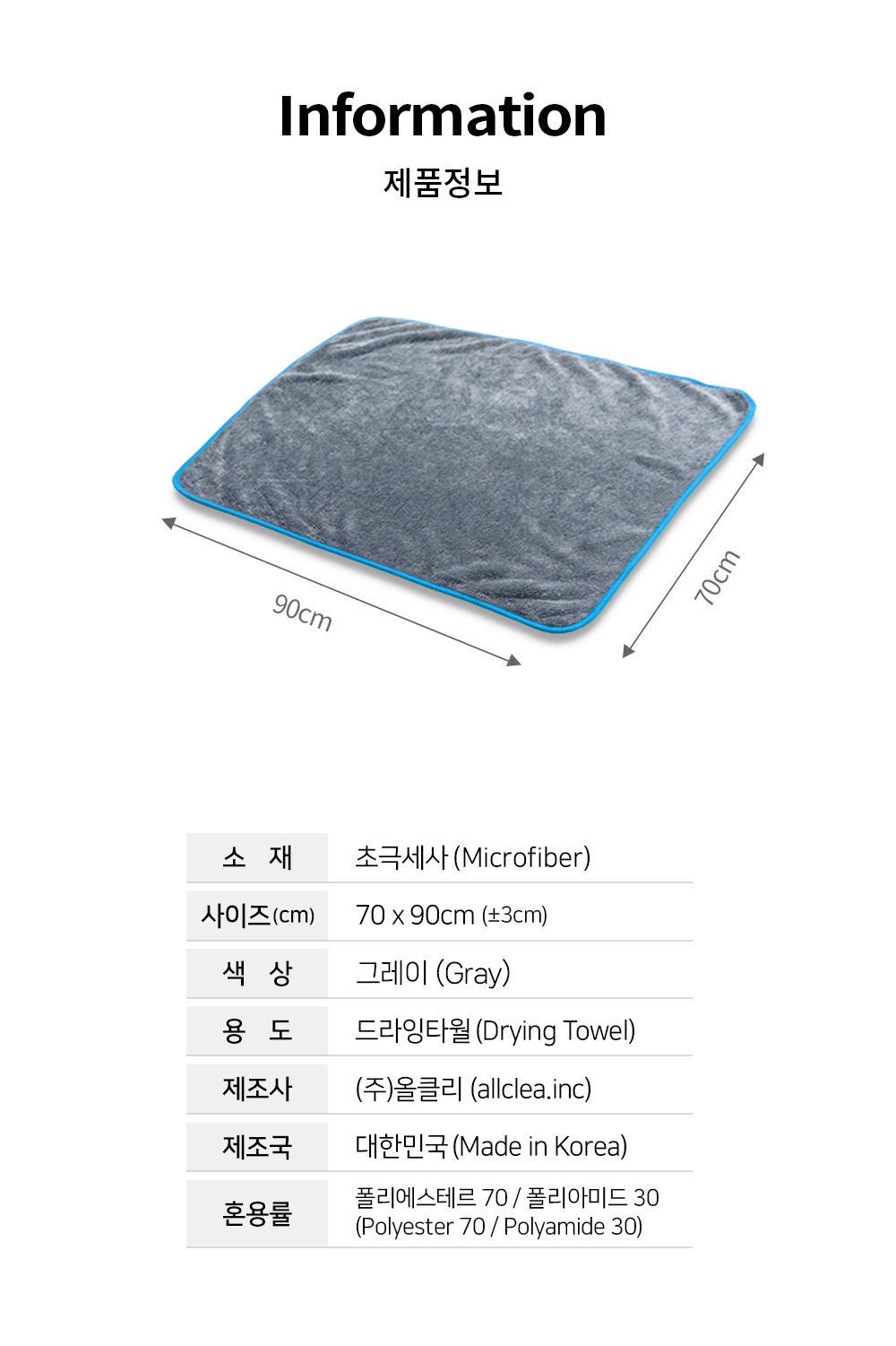 | 1. 품명 및 모델명 | 양면 (보스) 드라잉타월(대)(그레이) |