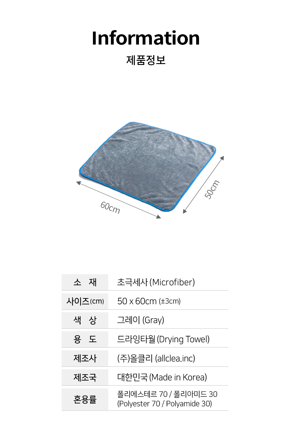 | 1. 품명 및 모델명 | 양면 (보스) 드라잉타월(중)(그레이) |