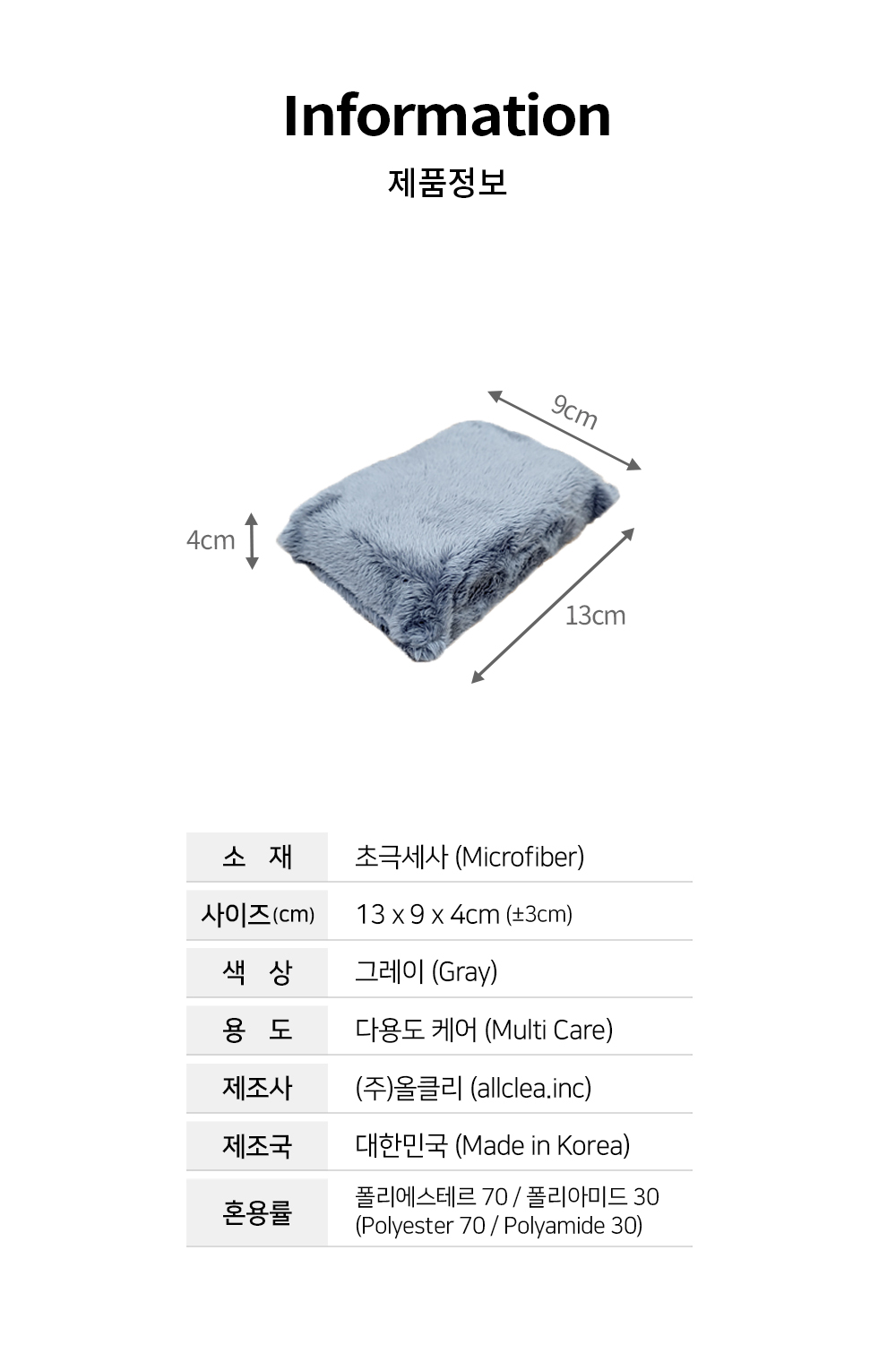 | 4. 제조자, 수입품의 경우 수입자를 함께 표기 | (주)올클리 |