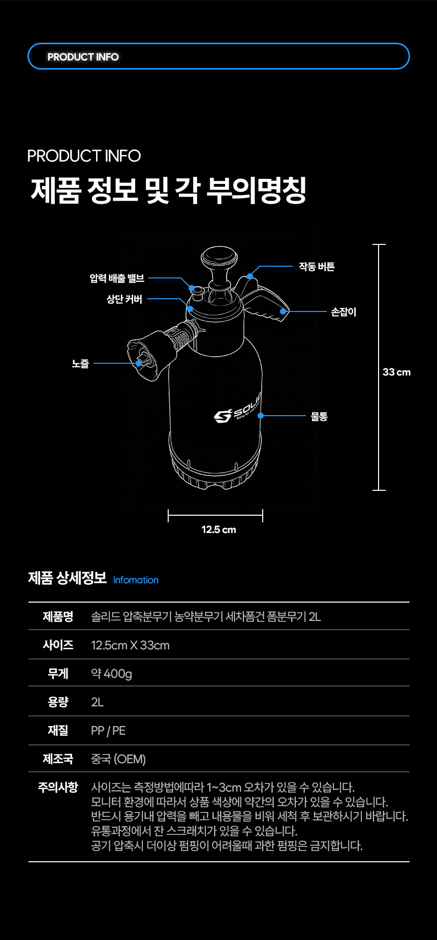 | 1. 품명 및 모델명 | 솔리드 2L 압축분무기 |