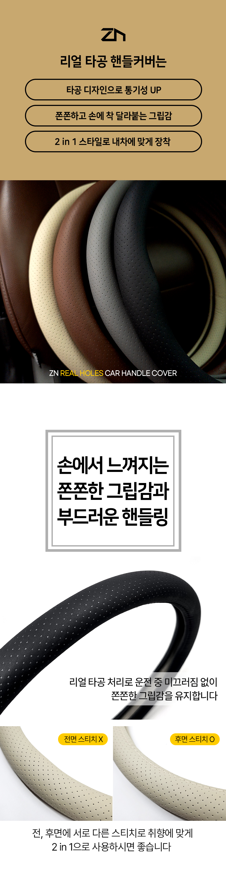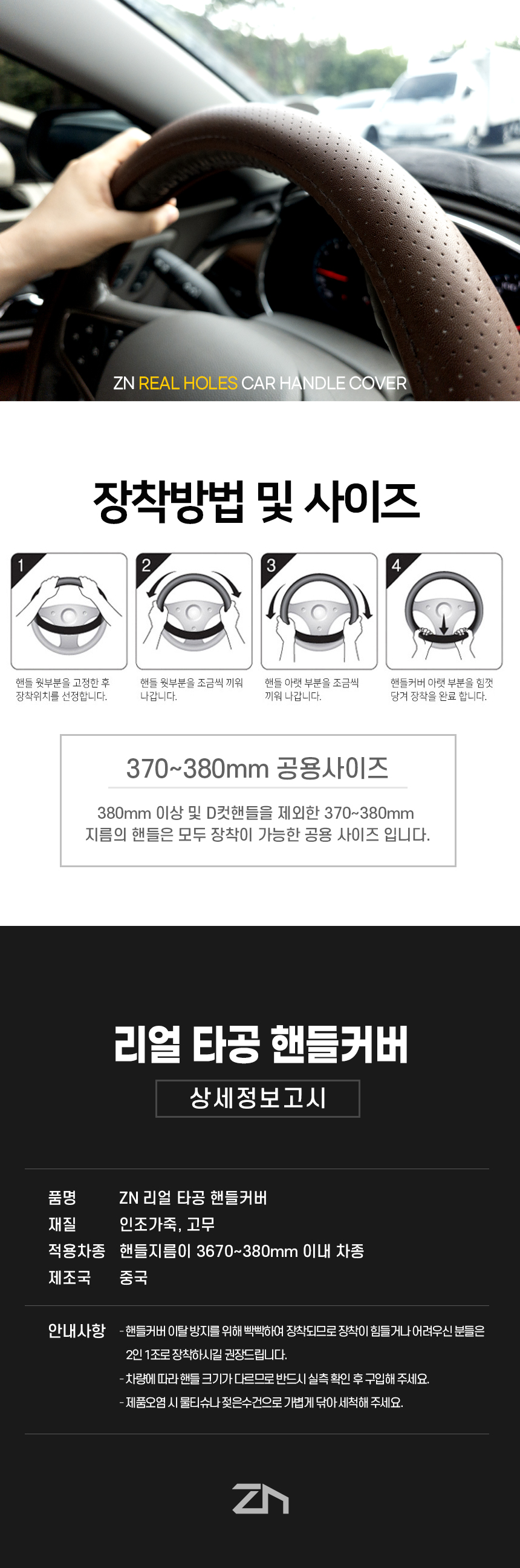 | 1. 품명 및 모델명 | ZN 리얼 타공 가죽 핸들커버 |