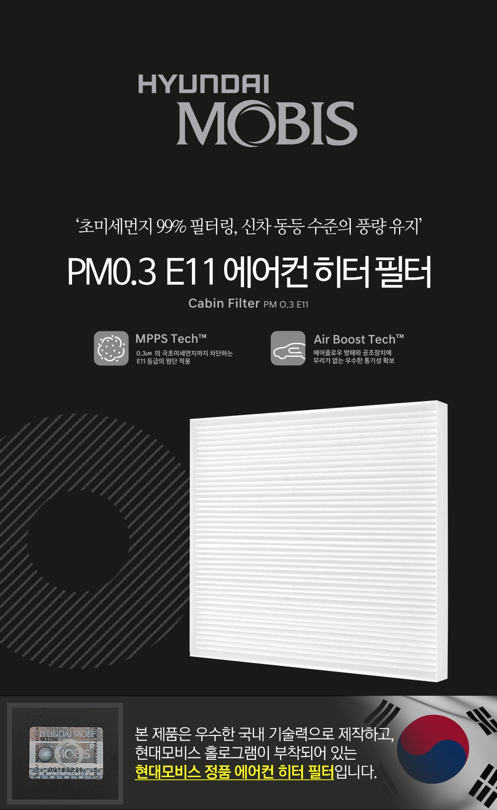 | 1. 품명 및 모델명 | 현대모비스 PM0.3 E11 에어컨 히터 필터 |