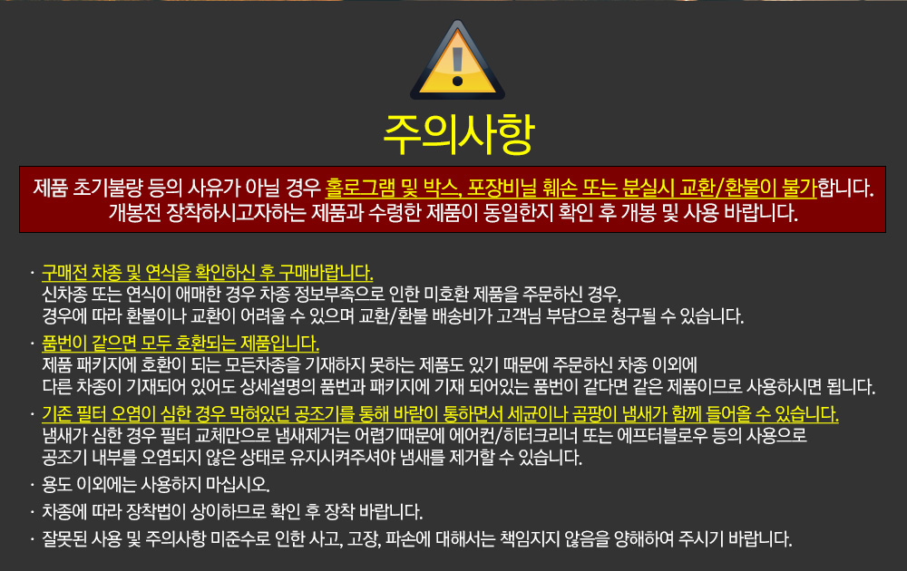 -제품 개봉 훼손 오염 및 장착하신 제품은 반품 환불이 불가 합니다