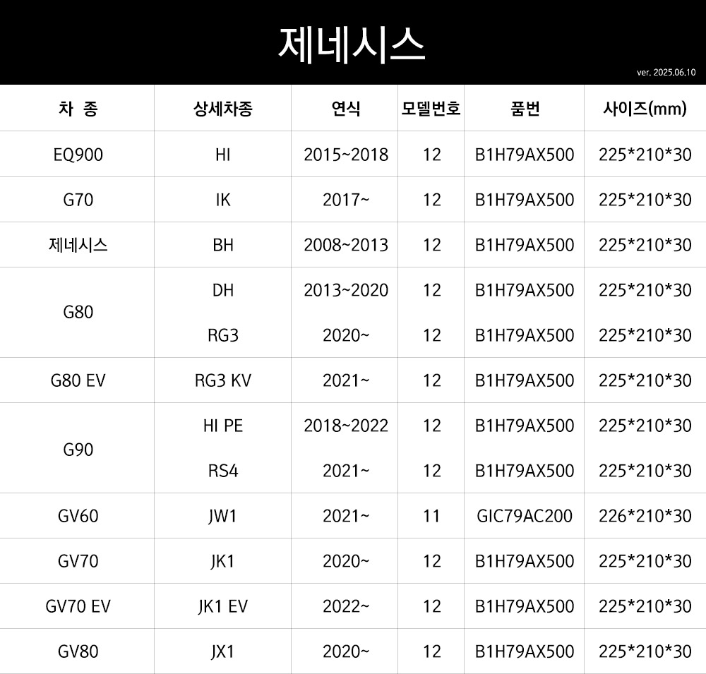 | 6. 크기 | 차종별 상이 |