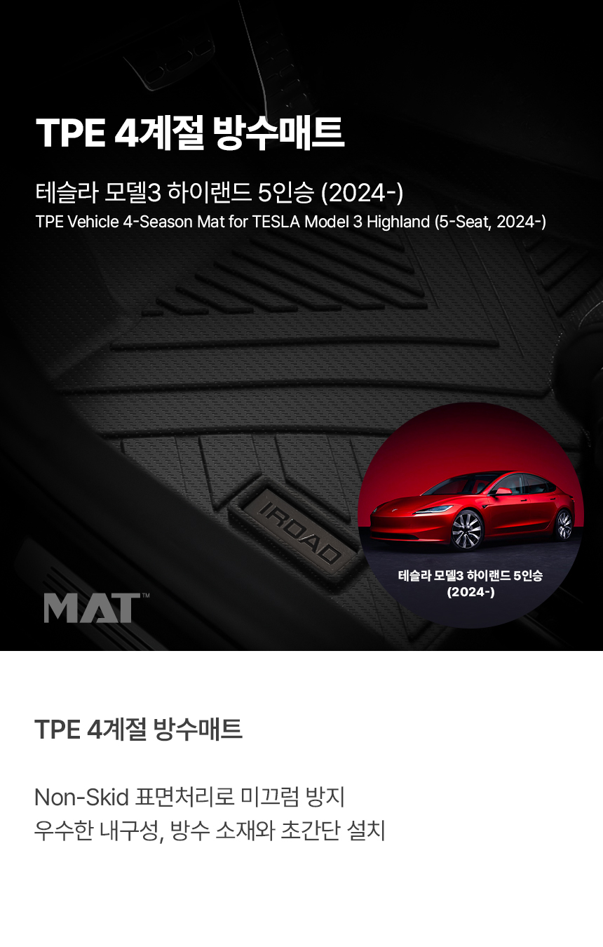 | 1. 품명 및 모델명 | 아이로드 TPE 카매트 풀커버 / 테슬라 3 하이랜드 5인승 (24년~) |