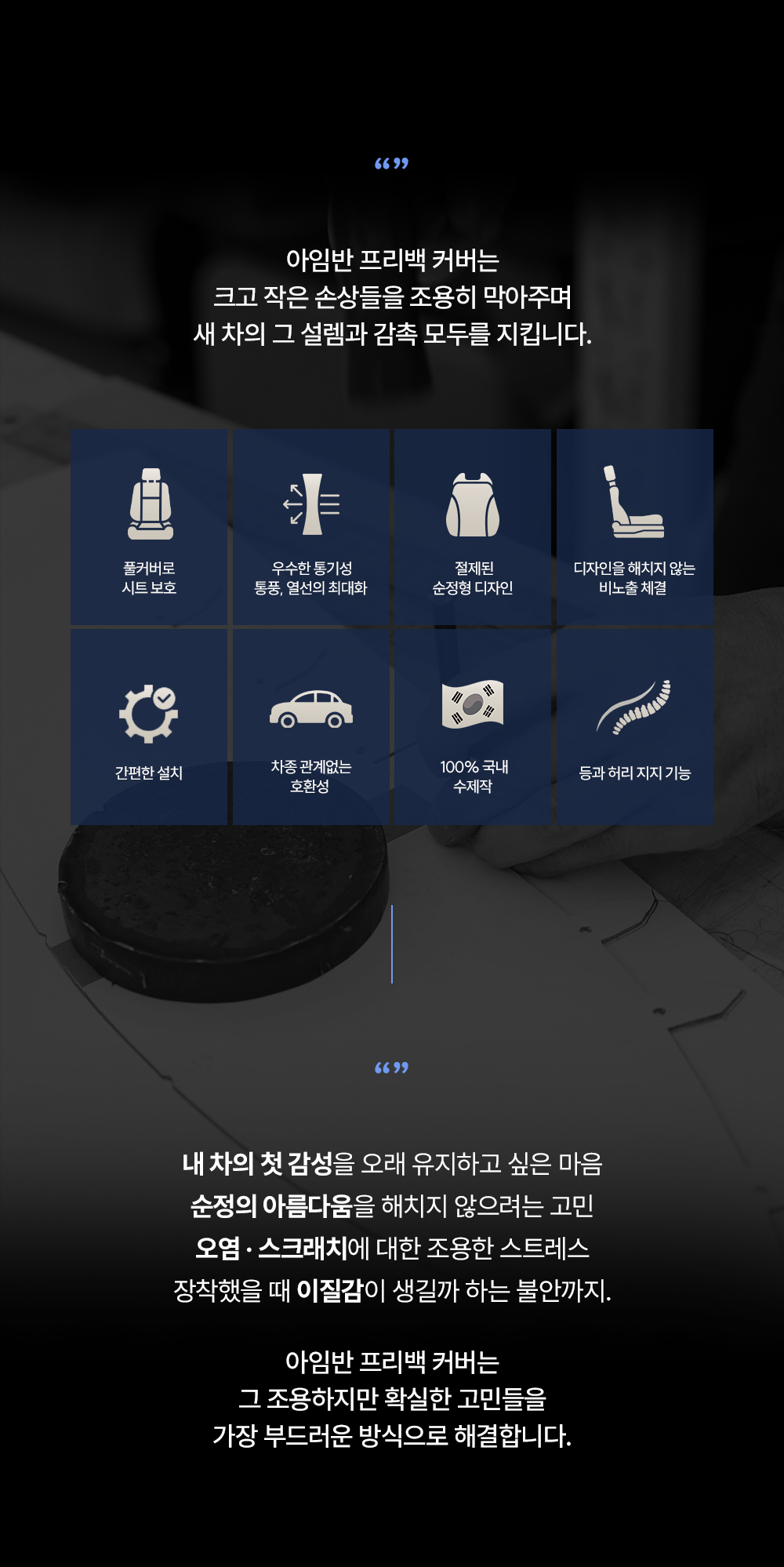 | 1. 품명 및 모델명 | 아임반 프리백커버 자동차 시트커버 차량용 시트 보호 통풍·열선 호환 등받이 쿠션 겸용 / FREEBACK COVER |