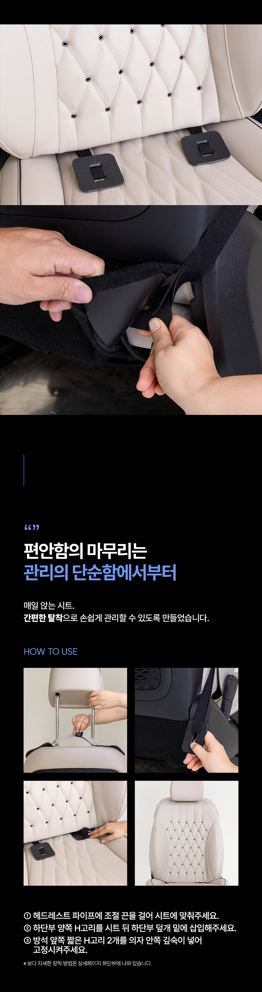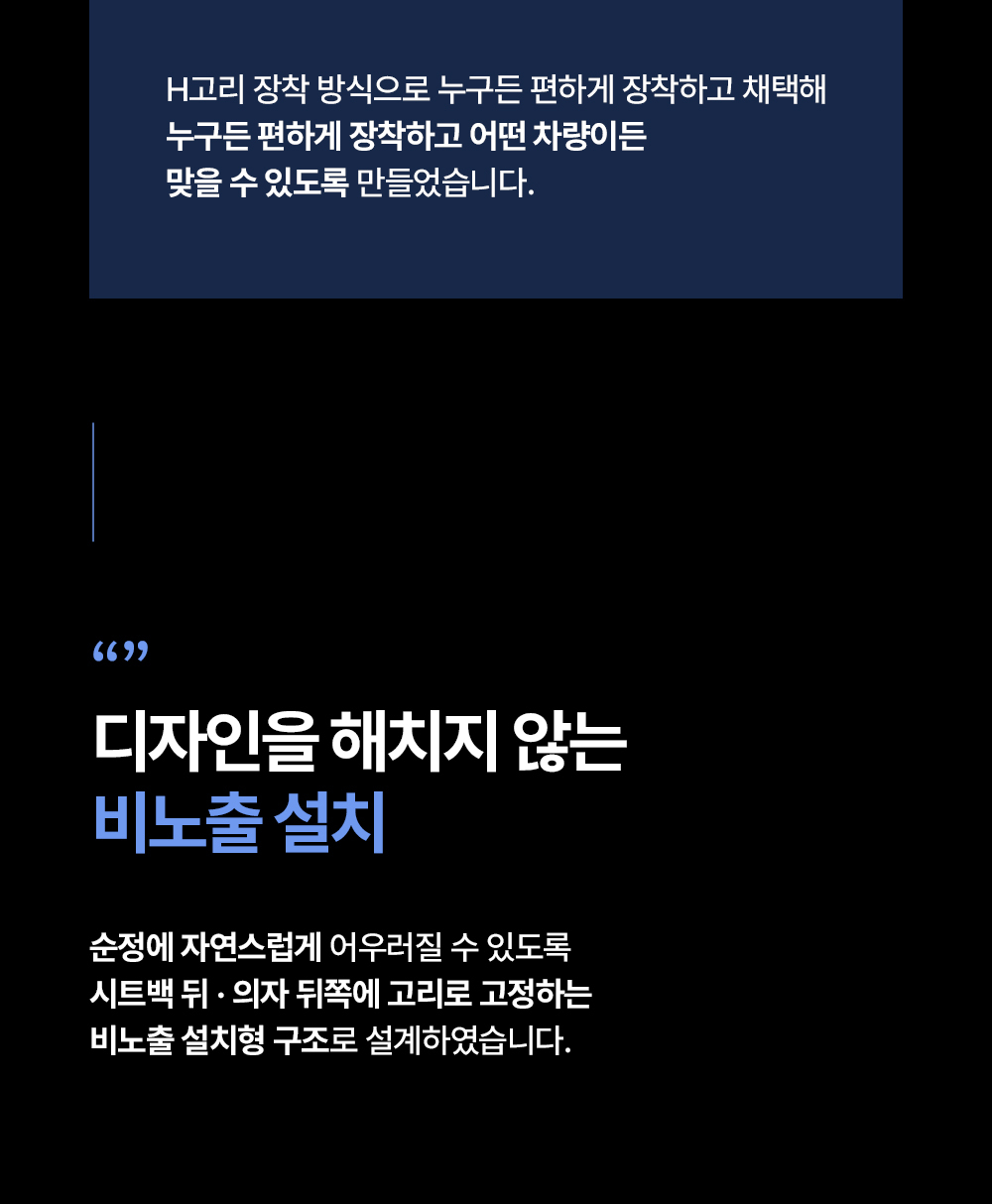 | 7. 적용차종 | 대부분의 차량에서 사용 가능하도록 범용 설계되었으며 헤드레스트 탈거가 불가능한 시트에는 장착이 어렵거나 불가능할 수 있습니다. |