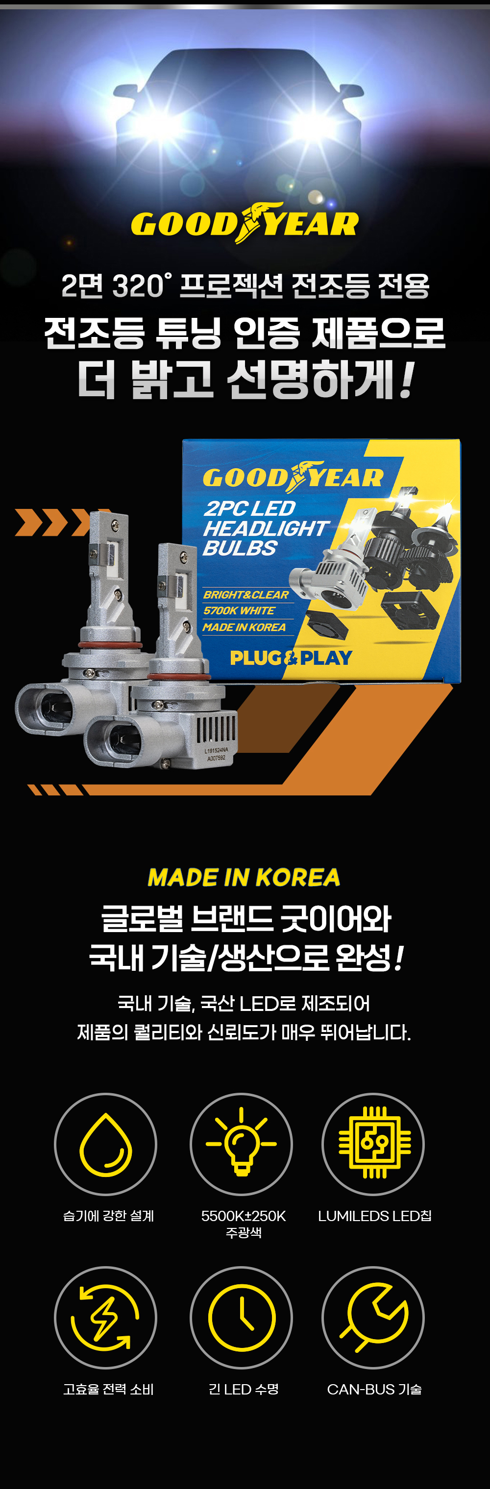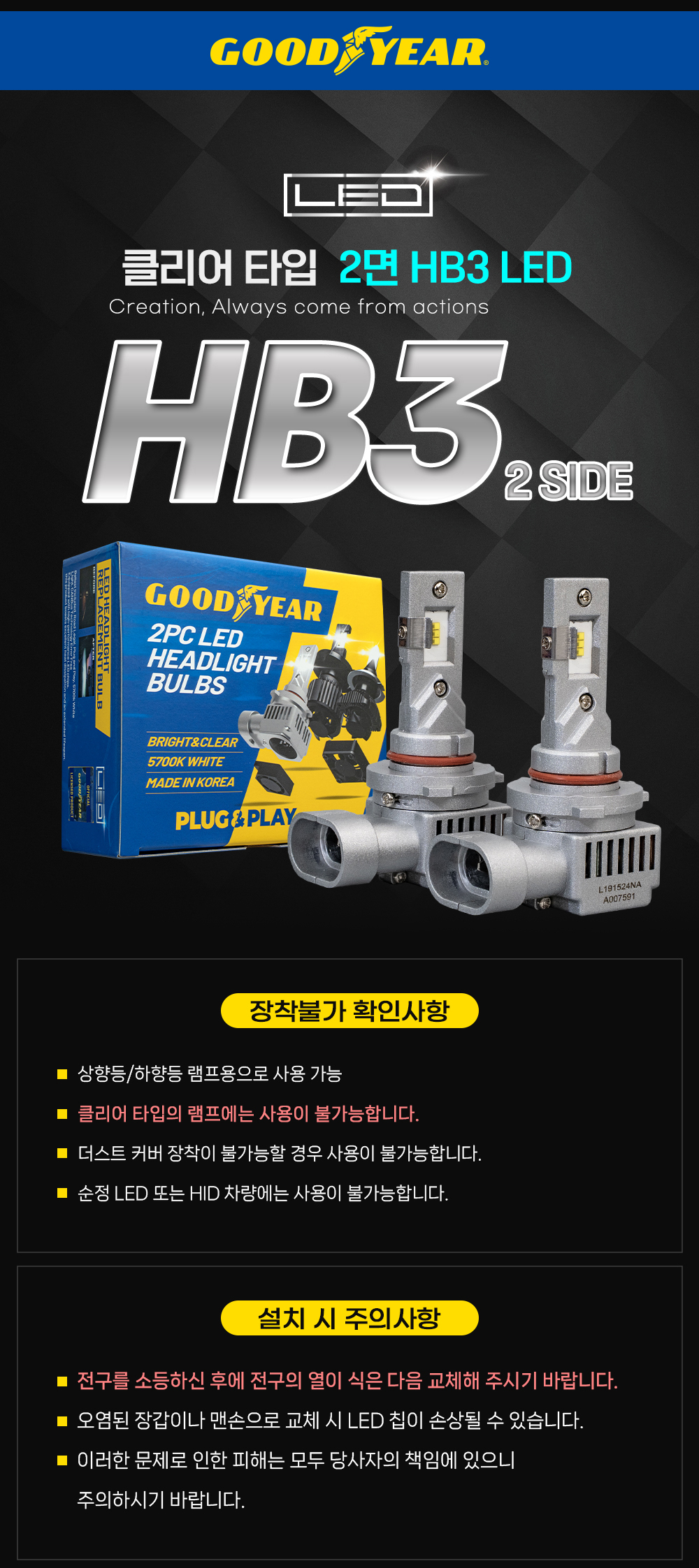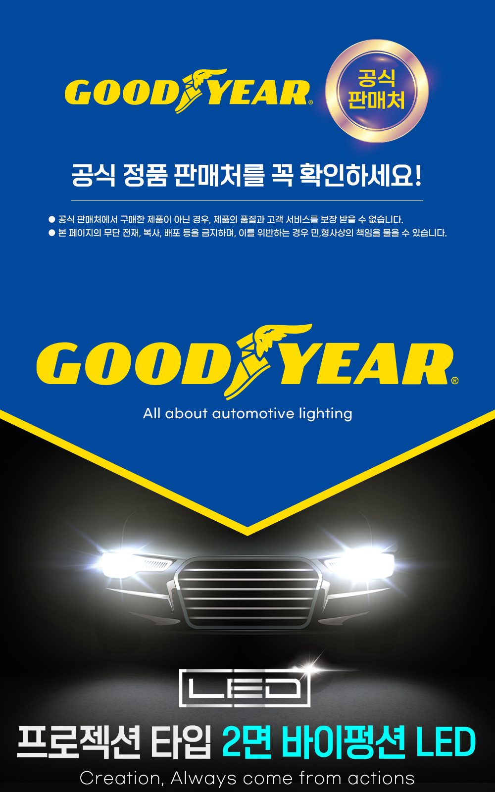 | 1. 품명 및 모델명 | 굿이어 2면 9005 LED HB3 튜닝합법 인증 전조등 헤드라이트 국내생산 |