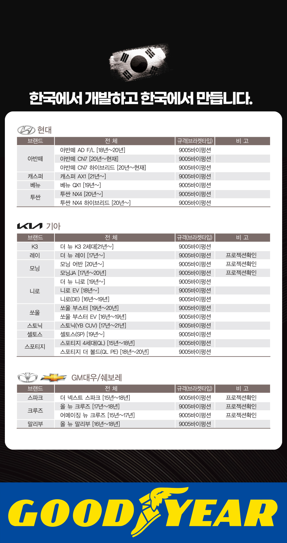 | 4. 제조자, 수입품의 경우 수입자를 함께 표기 (병행수입의 경우 병행수입 여부로 대체 가능) | 굿이어 협력사 |
