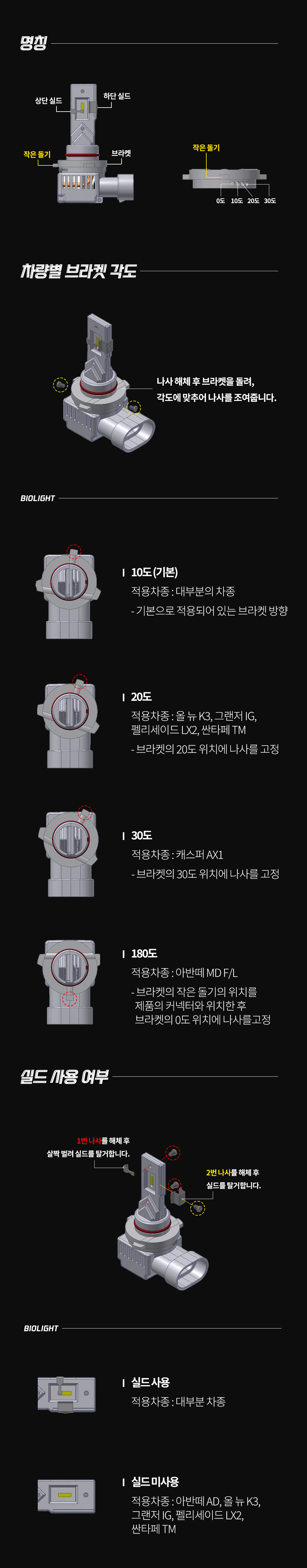 - 교차 장착 후에도 광량이 부족할 경우, 새 제품으로 교환 발송해 드립니다.