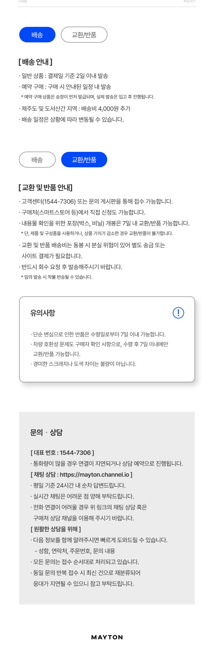 | 11. A/S 책임자와 전화번호 | 메이튼 / 1544-7306 |